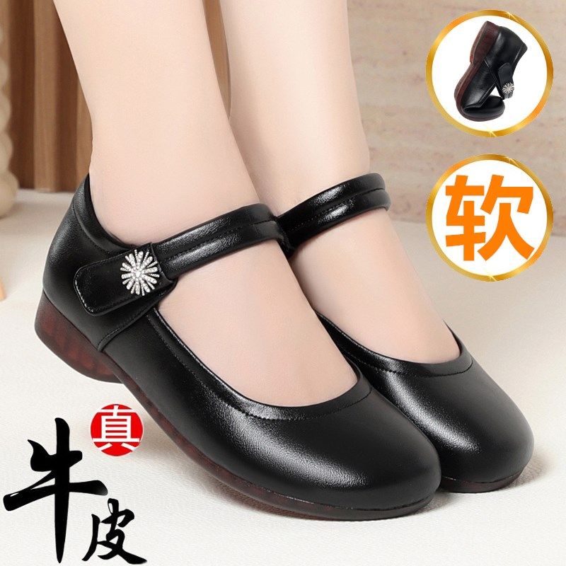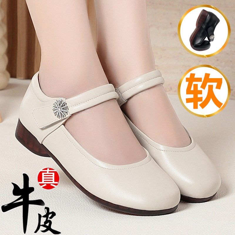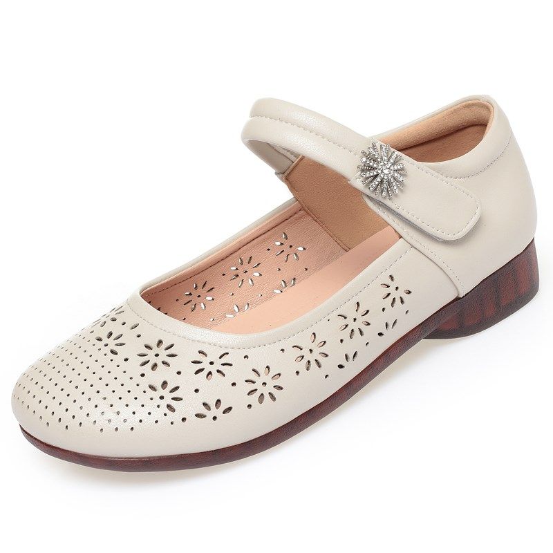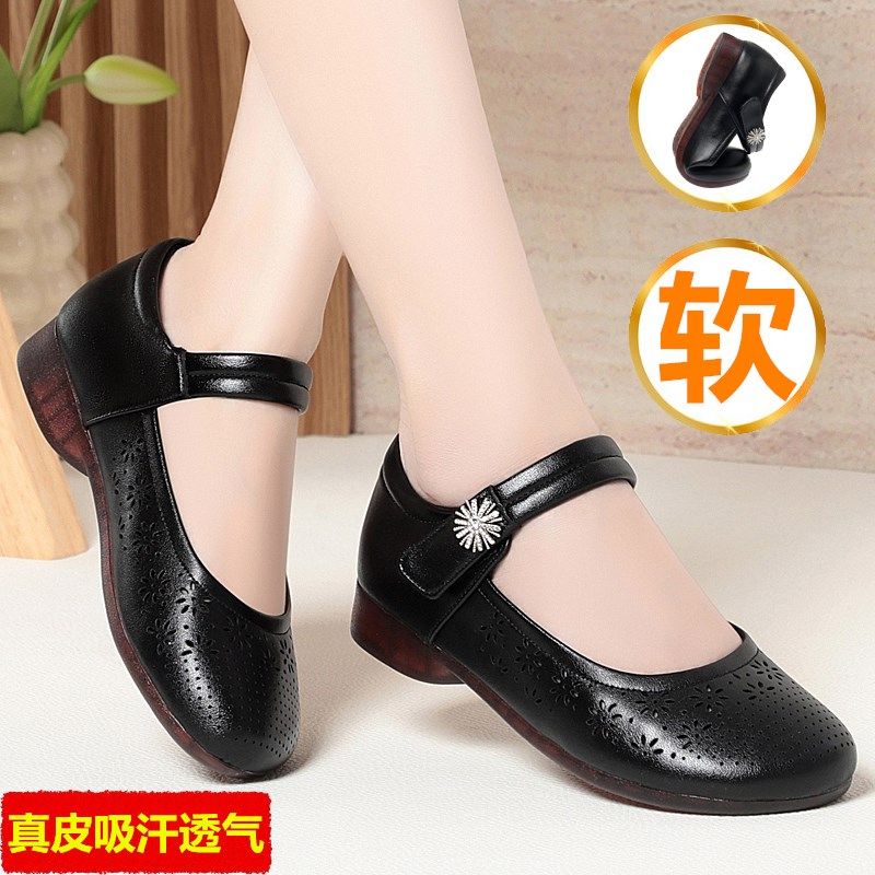 春夏季真皮牛筋软底妈妈女单鞋平底防滑中老年镂空透气洞洞鞋凉鞋