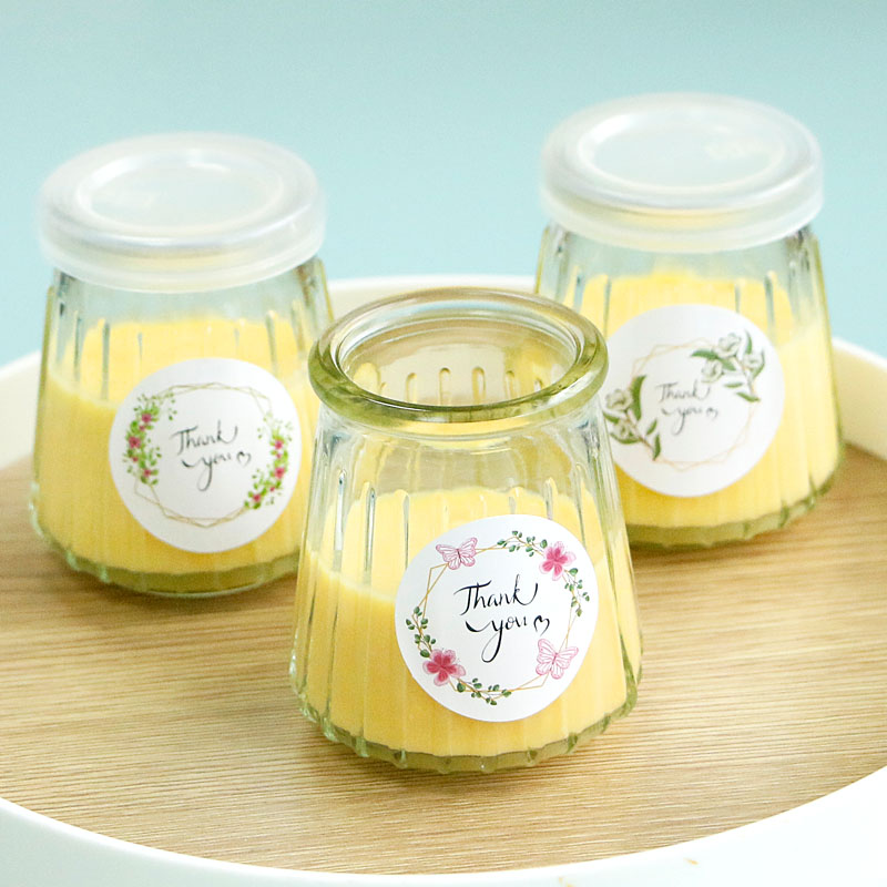 竖条纹布丁瓶玻璃带盖布丁杯甜品台装饰慕斯杯果冻杯酸奶瓶耐高温