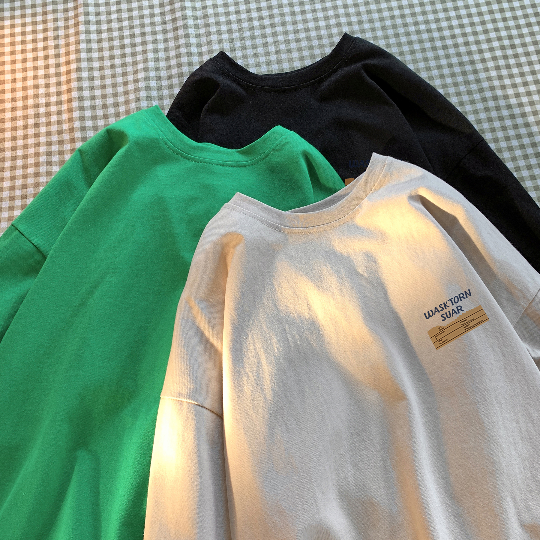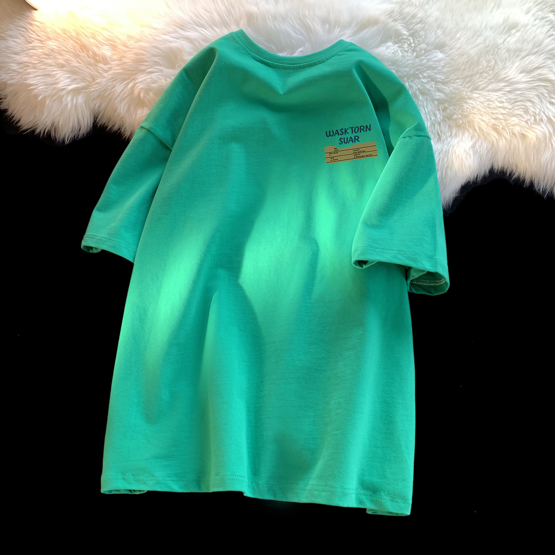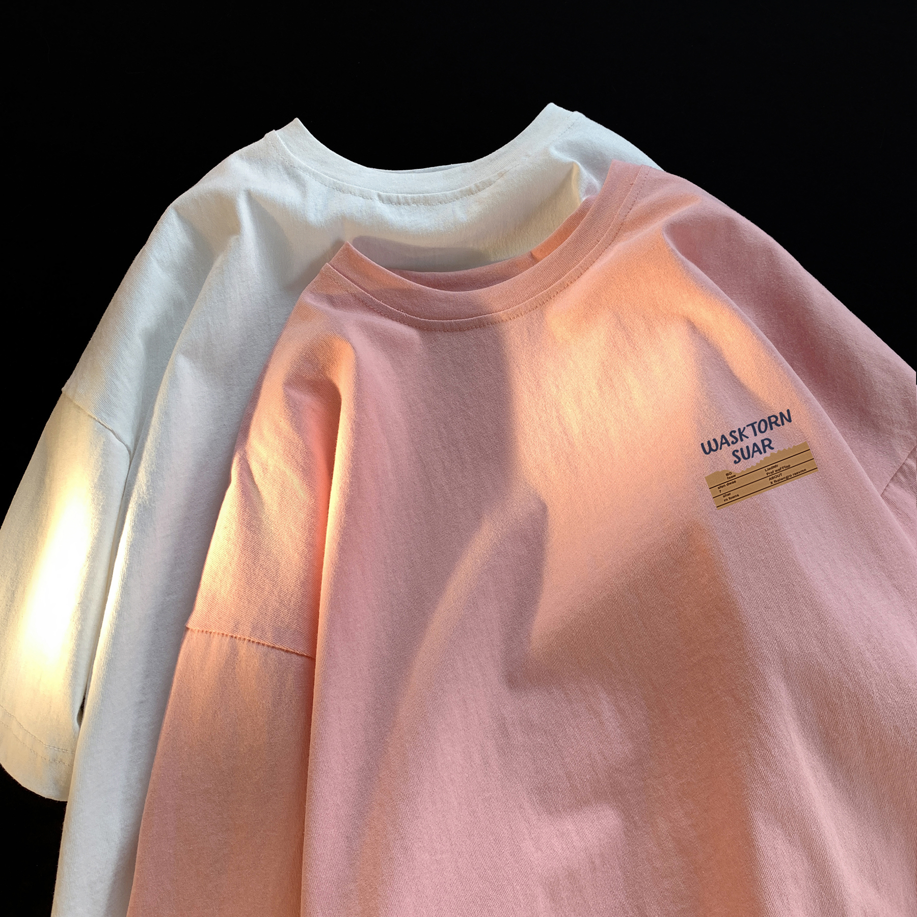 白色冰丝短袖t恤男生2025新款夏季潮牌宽松重磅高街半袖体恤衣服