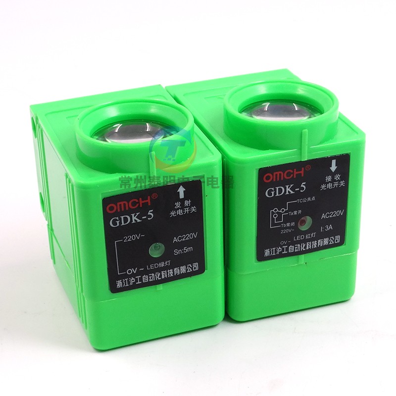 沪工自动化继电器输出光电开关 GDK-5交流220V亮通常开对射式5米
