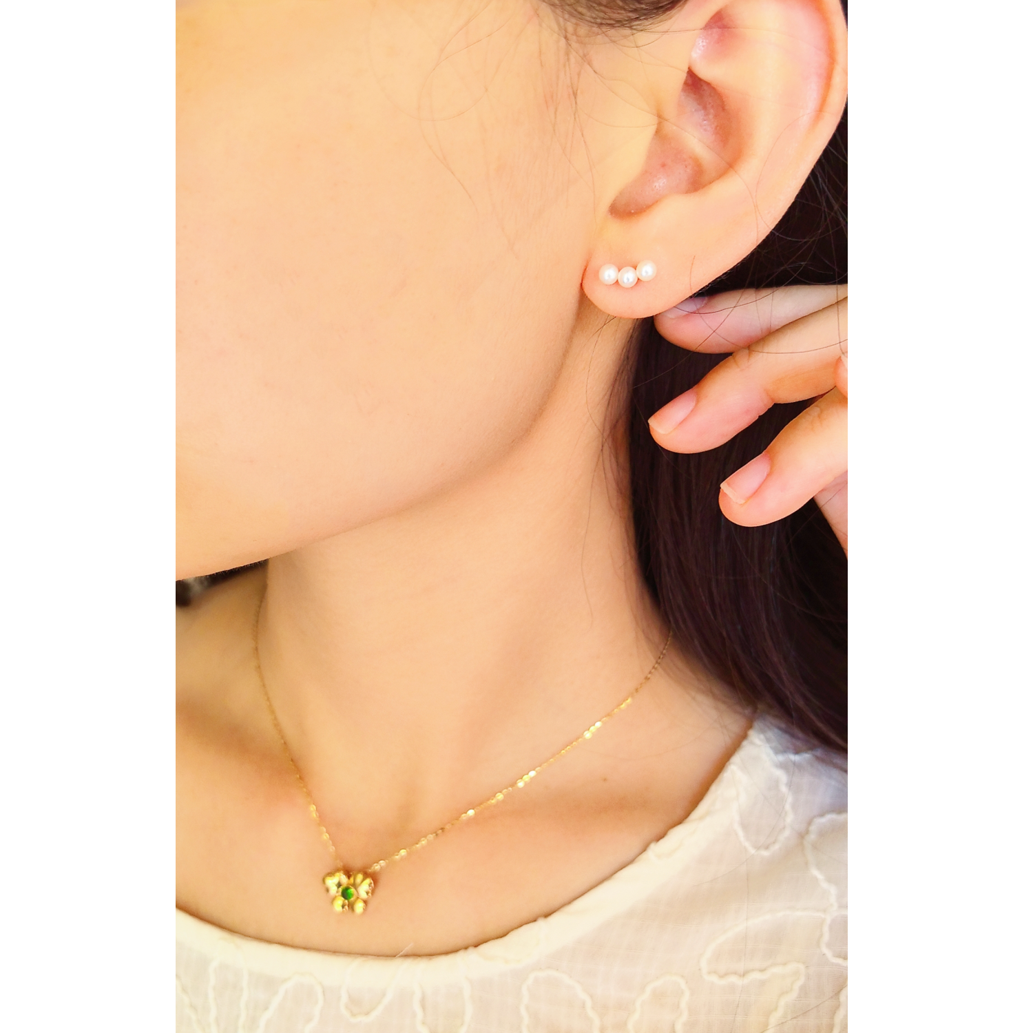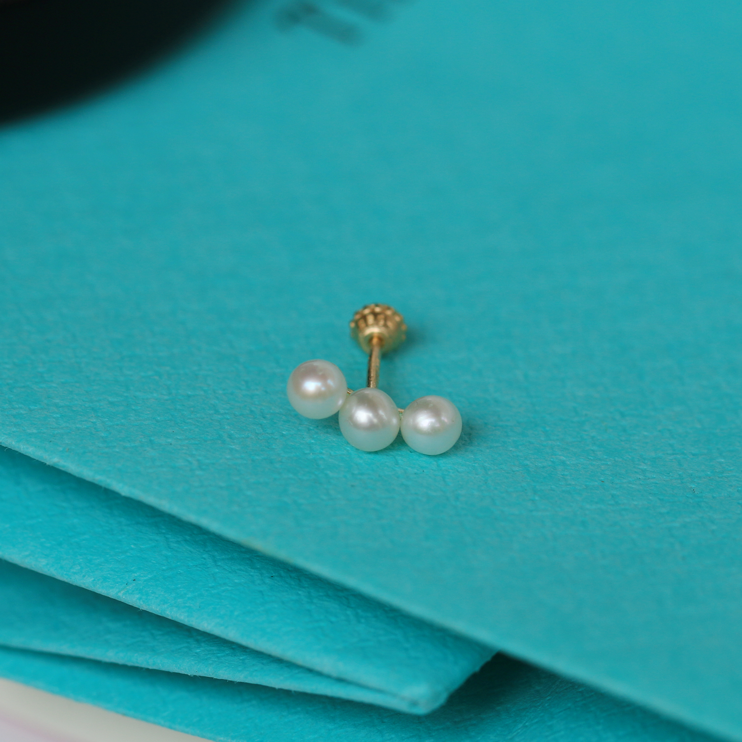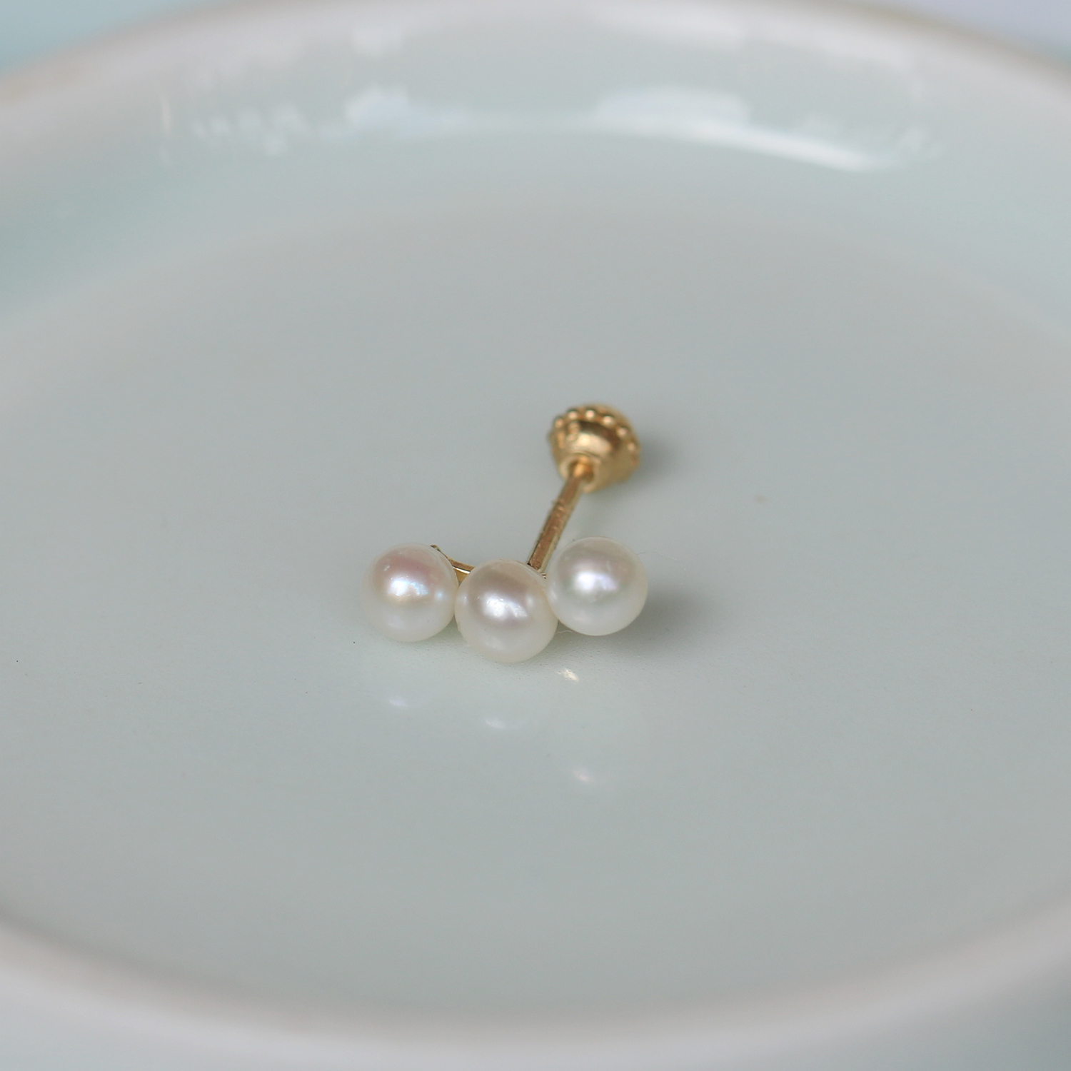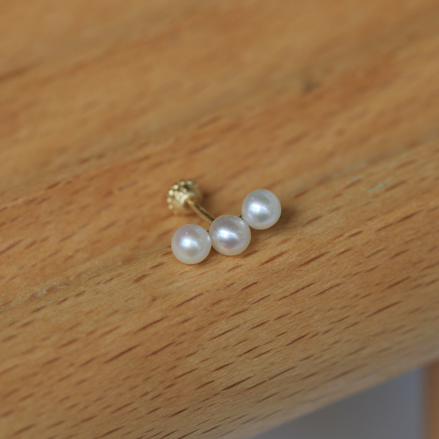 现货无折 纯14K金三颗小珍珠螺丝堵耳钉单只 迷你淡水珠温柔弧度