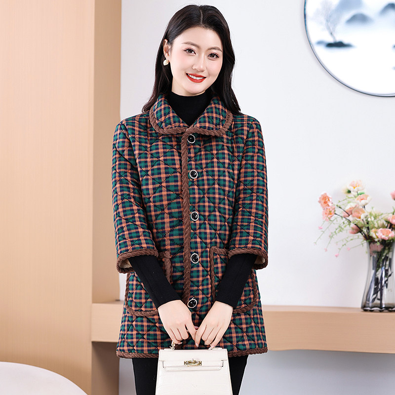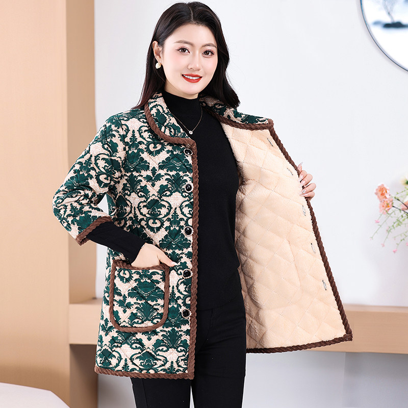 妈妈冬装加绒保暖中袖棉衣马甲中老年女装大码中长款防寒棉服马夹