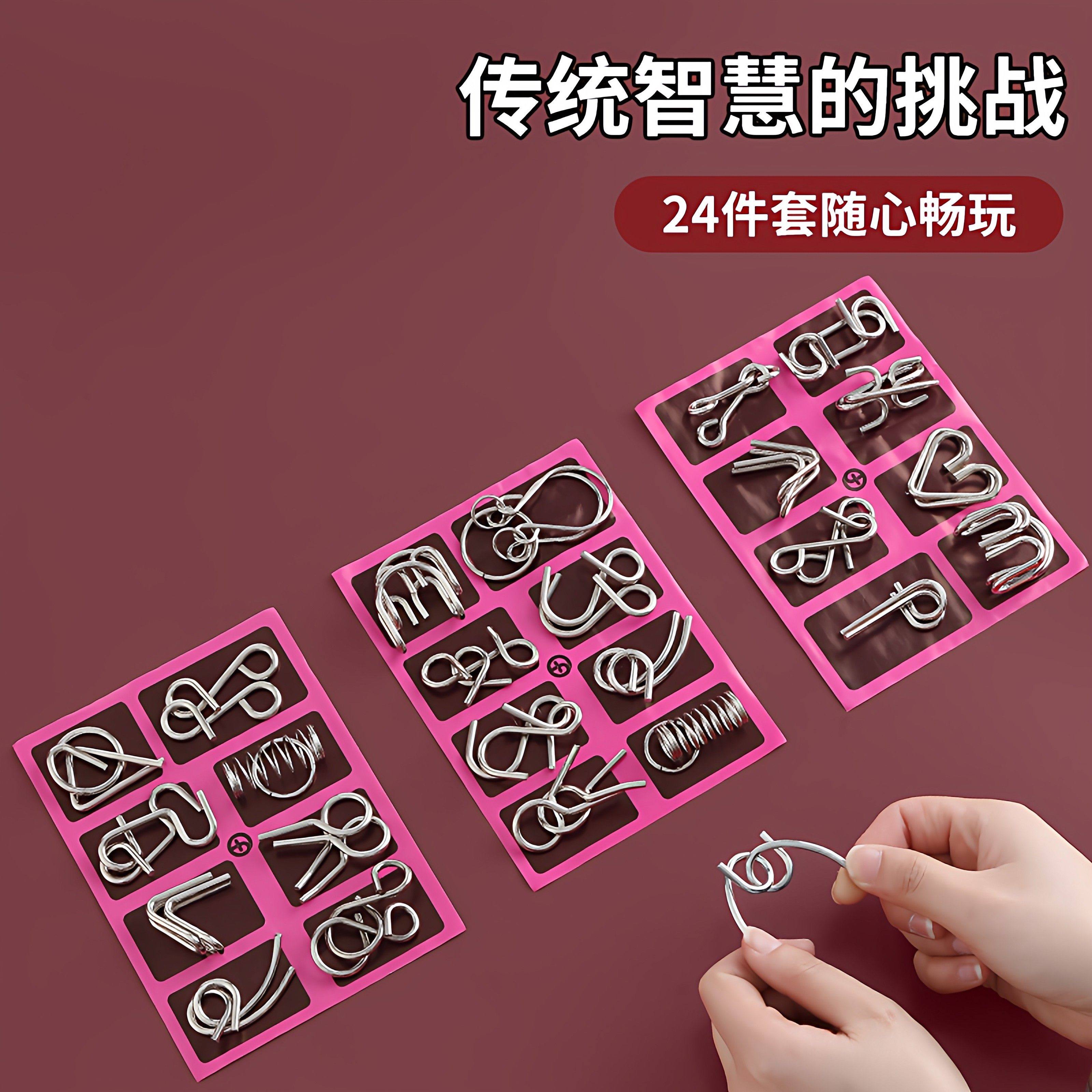 九连环智力解锁环解扣儿童小学生益智玩具鲁班锁孔明锁全套24件套