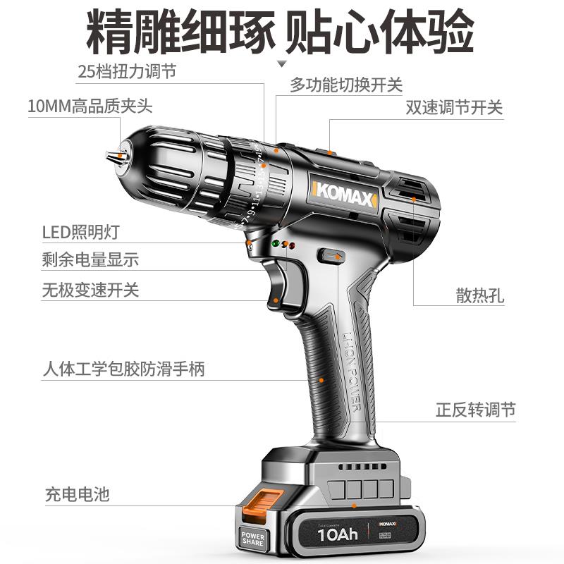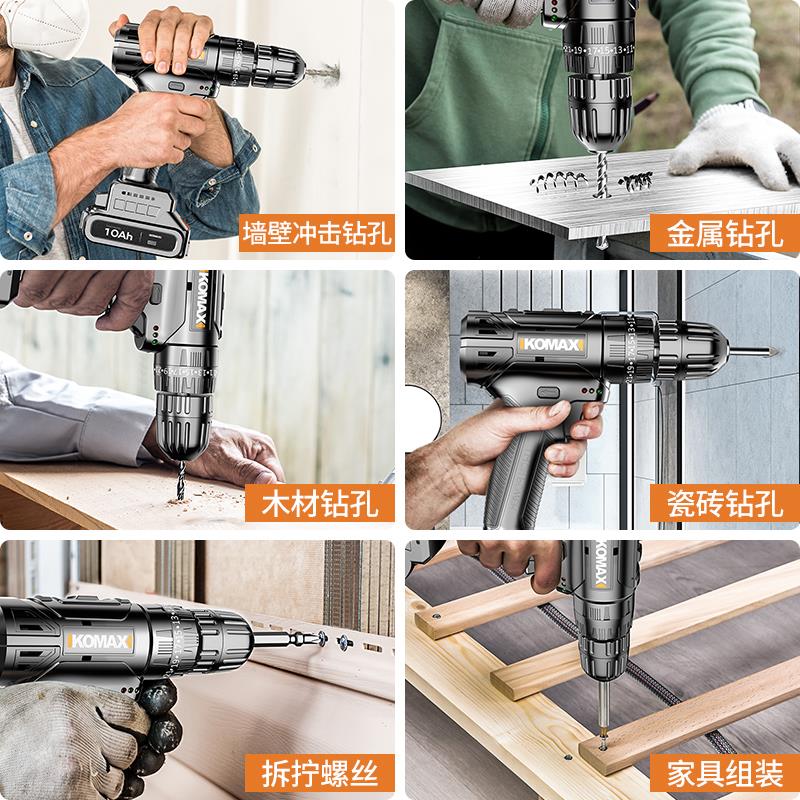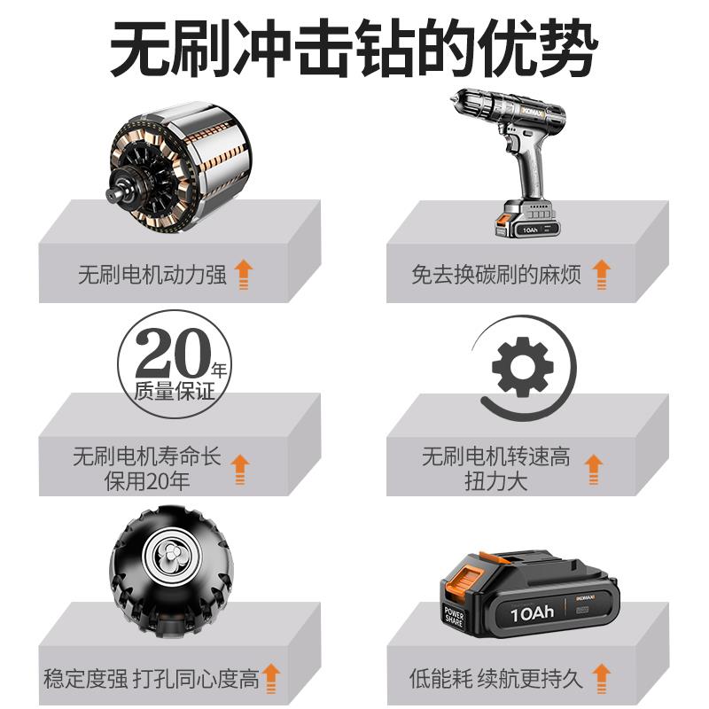 无刷冲击锂电钻电动螺丝刀充电式手钻手枪钻多功能家用手电钻工具