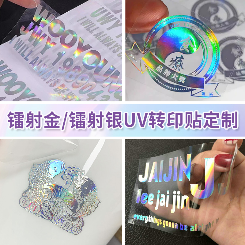 镭射UV转印贴定制防水烫金撕膜留字立体不干胶标签印刷镂空七彩渐变车贴纸设计礼盒logo商标金属水晶标贴打印