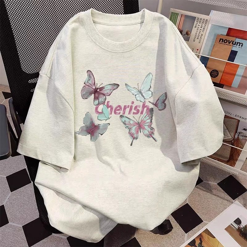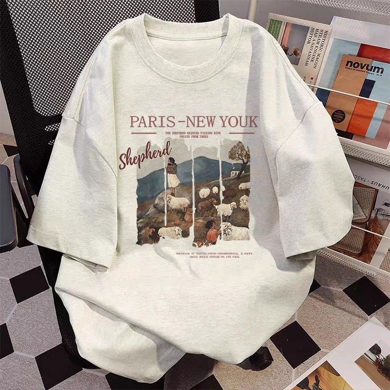 美式白灰色纯棉短袖t恤女2025夏季新款爆款宽松设计感韩版上衣潮