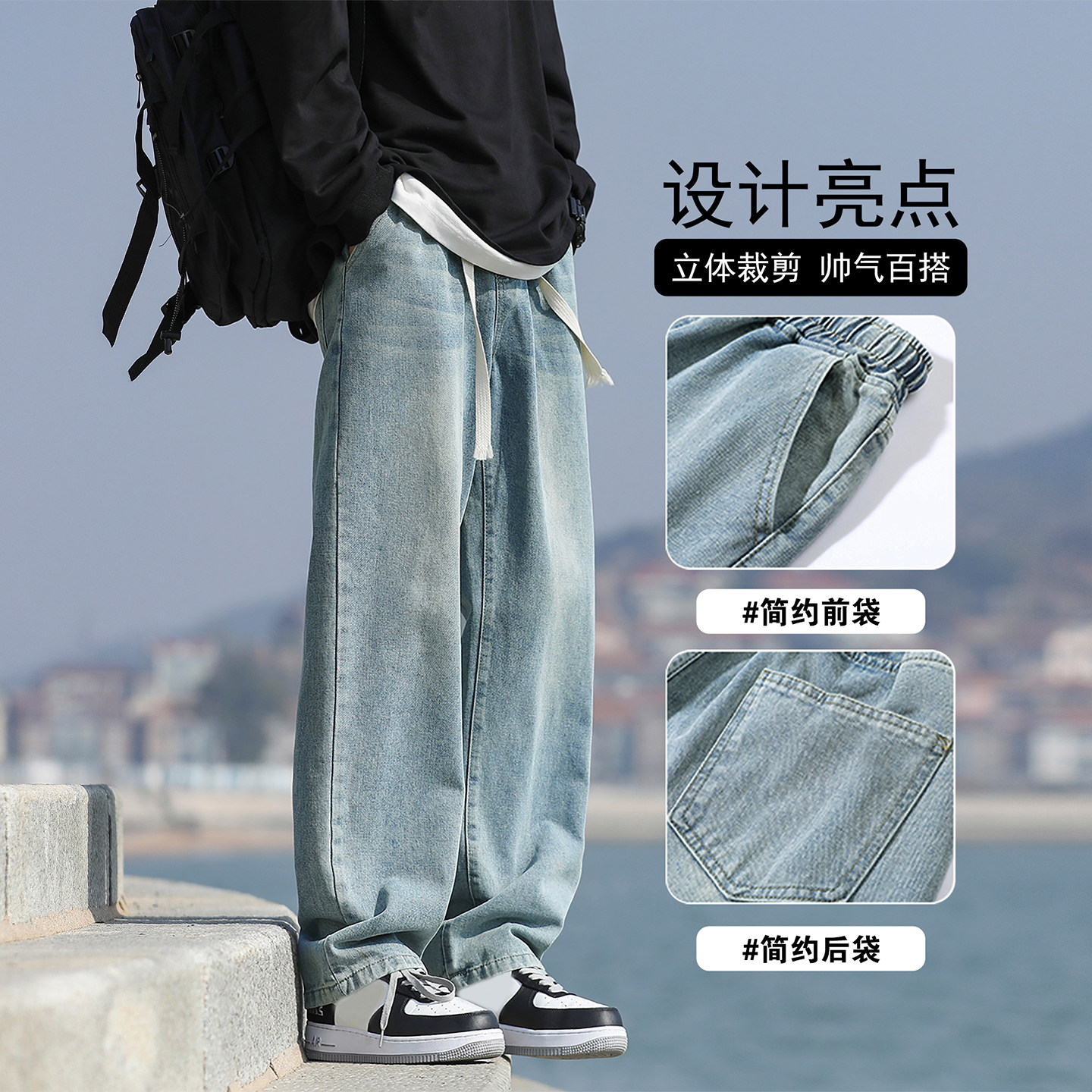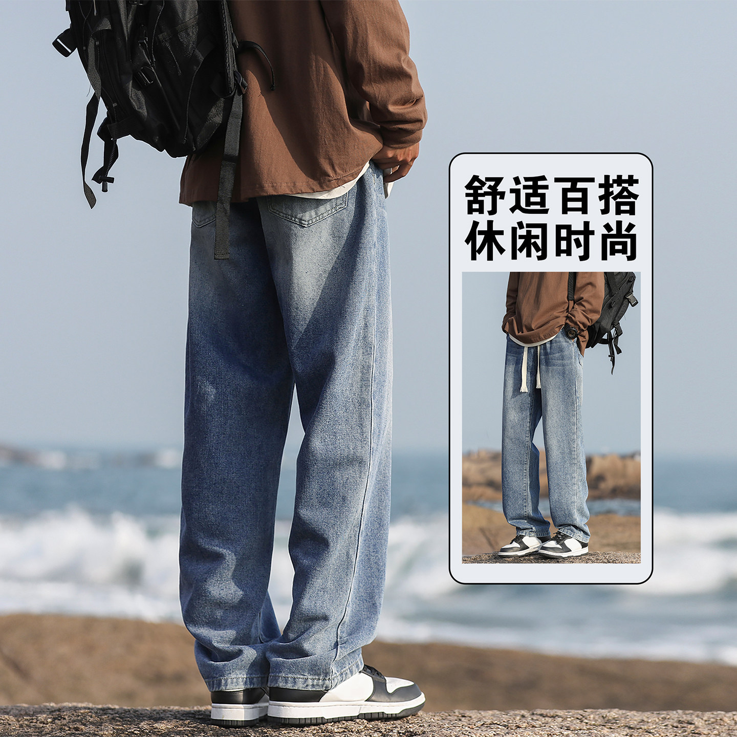 真维斯复古牛仔裤男秋冬宽松直筒