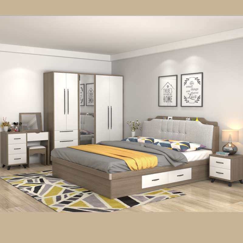 现代套房家具主卧气动储物布艺大床板式全屋成套组合带妆台床头柜