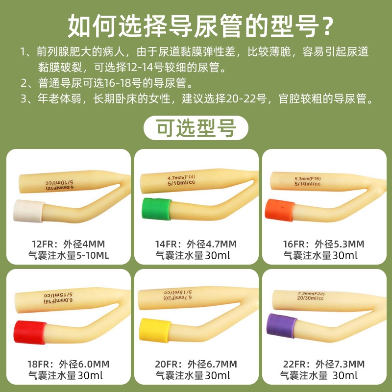 可孚一次性乳胶导尿管引流袋男用留置老人女医用长期双腔无菌超滑