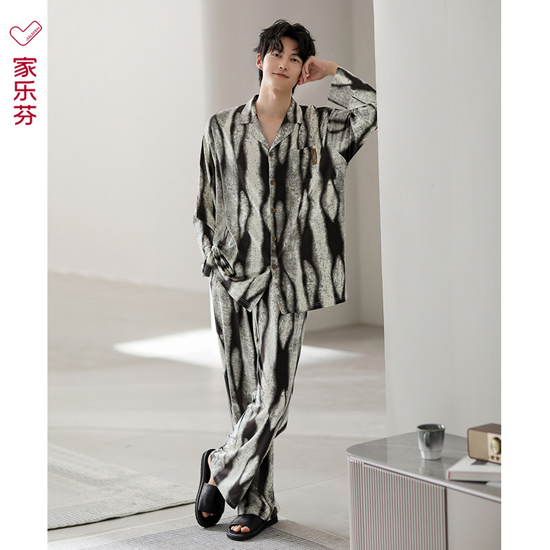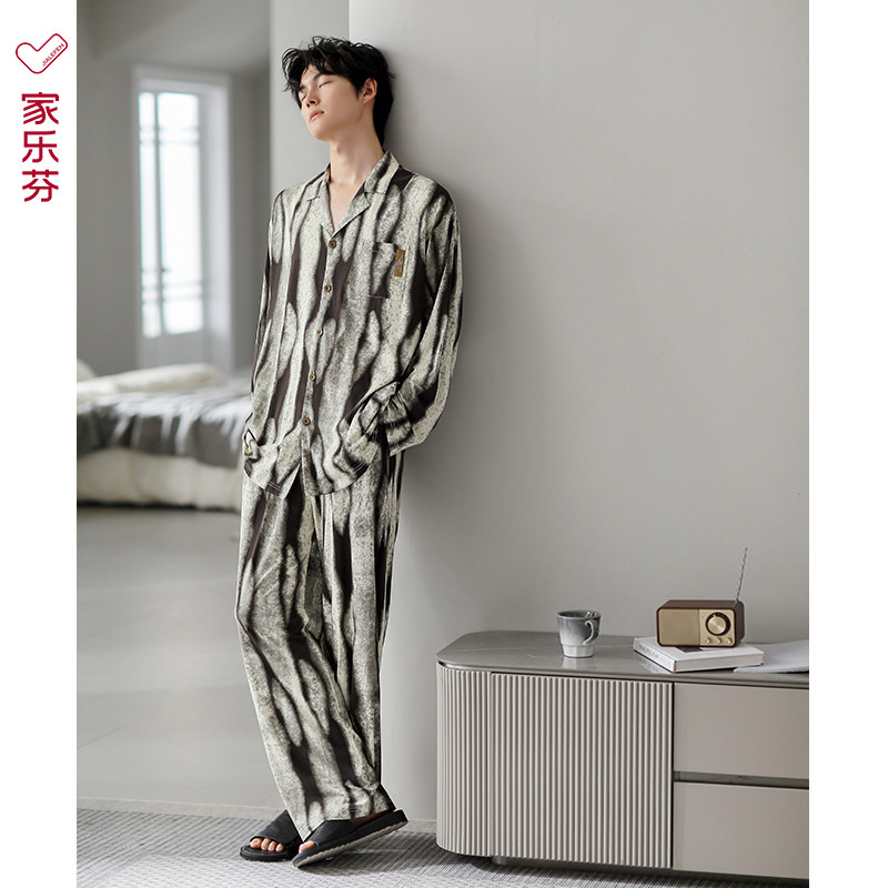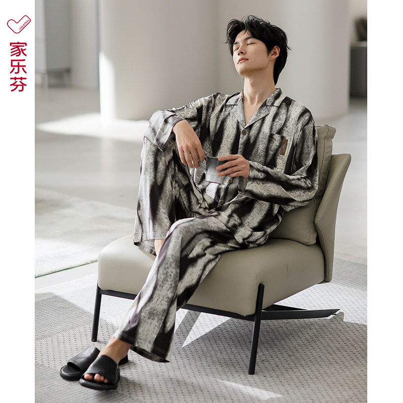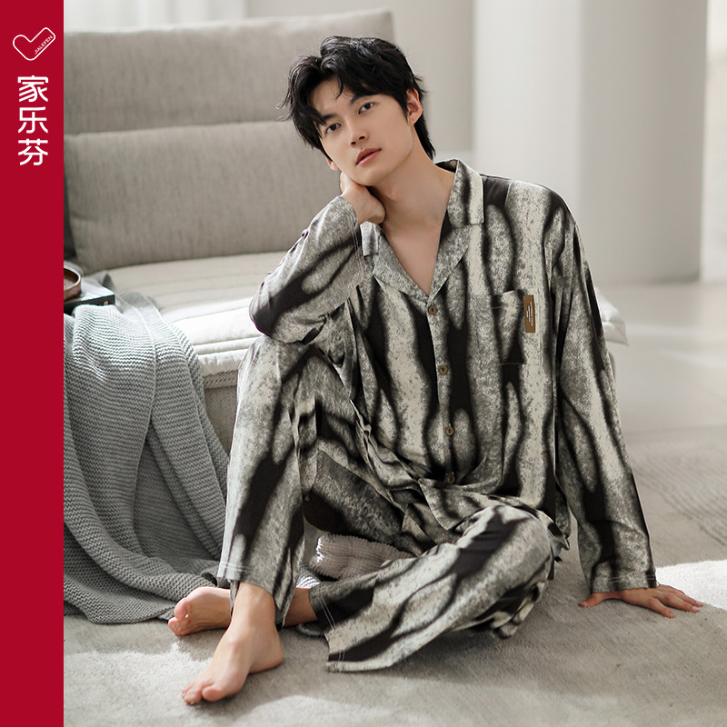 家乐芬睡衣男士夏款夏季莫代尔长袖家居服春秋款秋季薄款冰丝套装