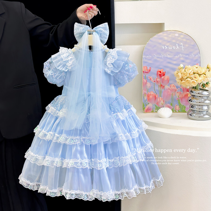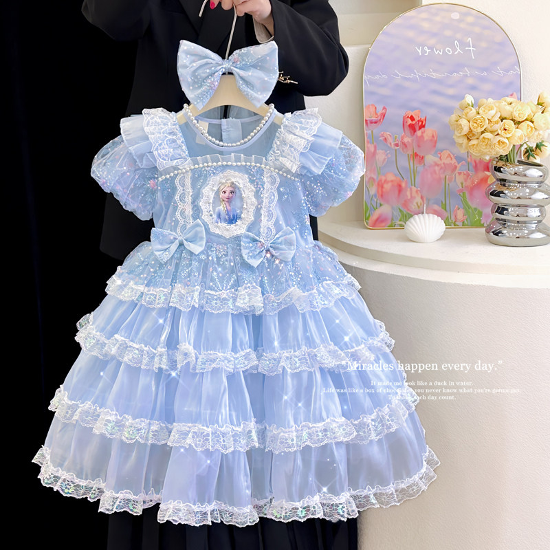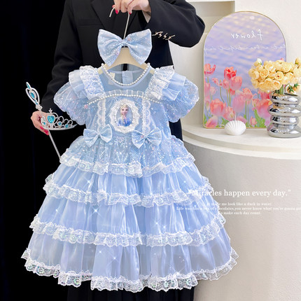 爱莎公主裙女童连衣裙夏装洋气重工洛丽塔蓬蓬裙儿童艾莎礼服裙子