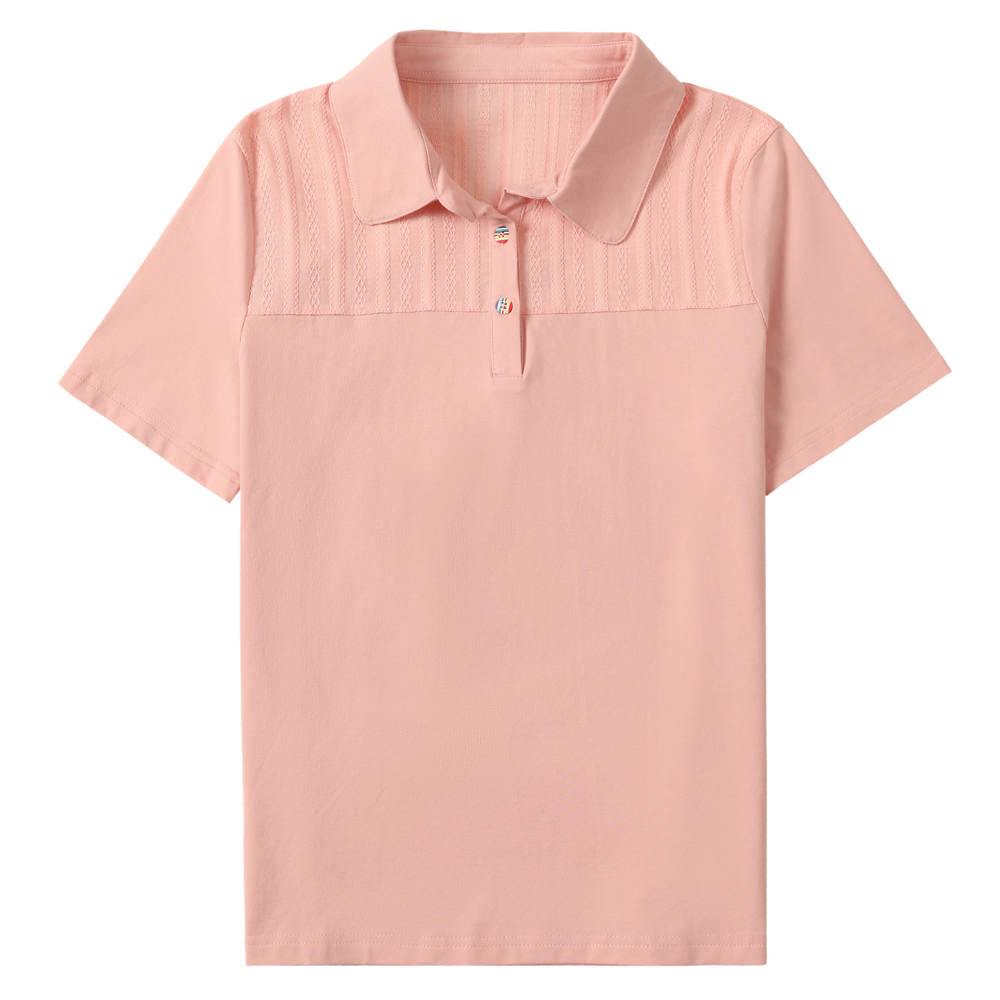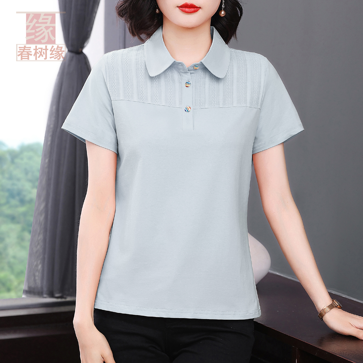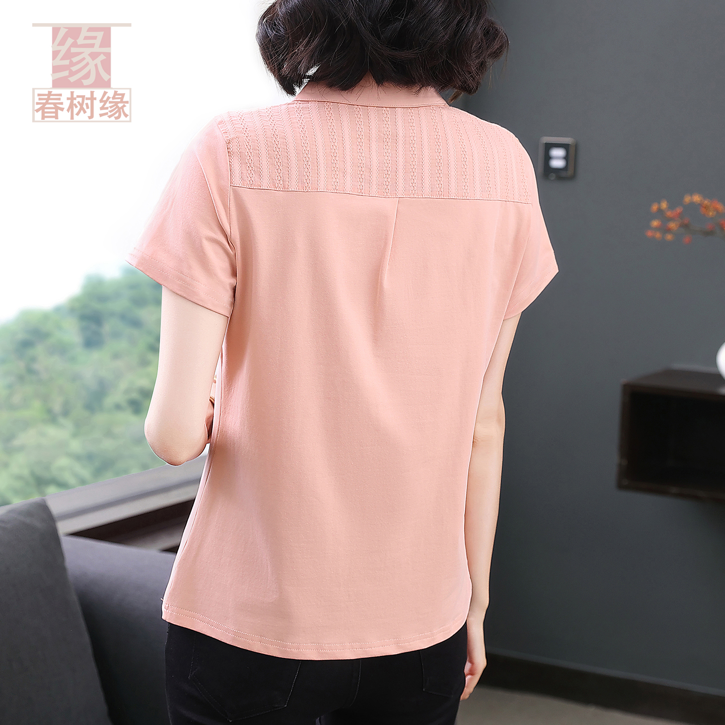 粉色纯棉短袖polo领t恤女夏季新款妈妈装翻领纯色气质女装上衣服