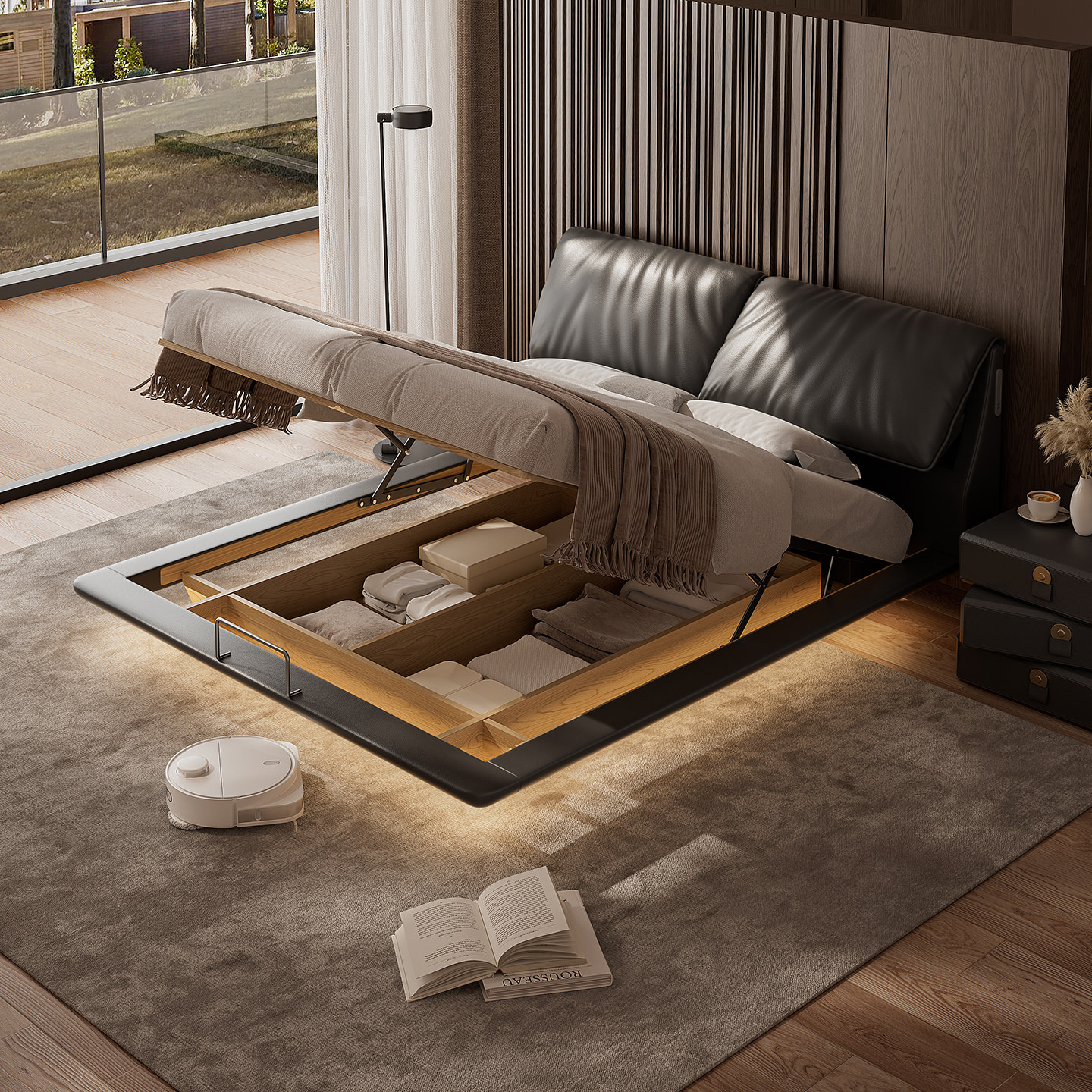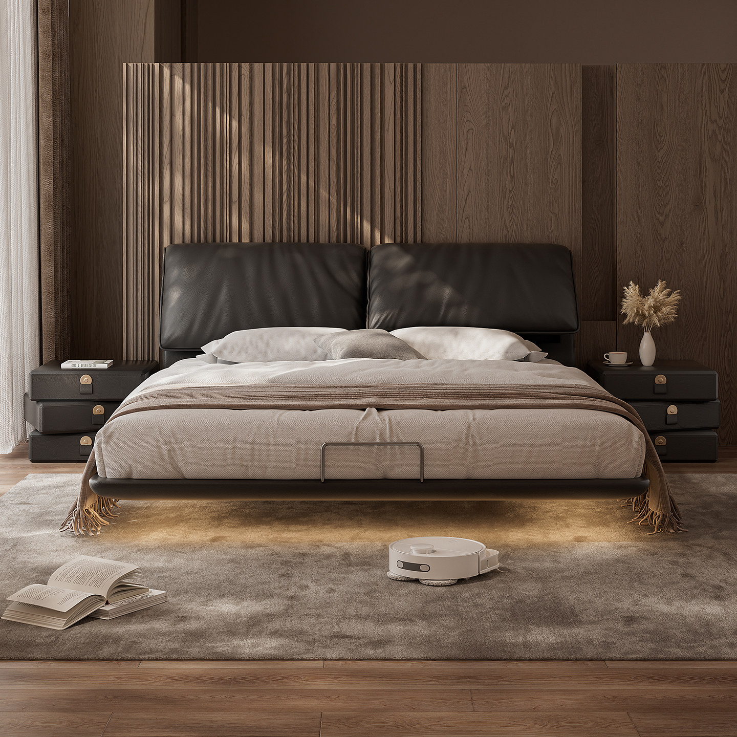 大象耳朵真皮悬浮床2026年新款床意式极简床高端主卧室大床现货