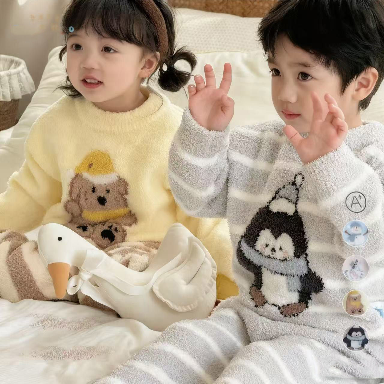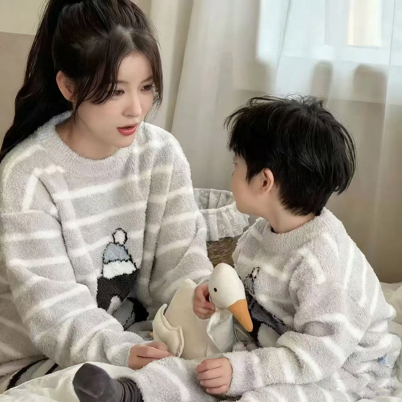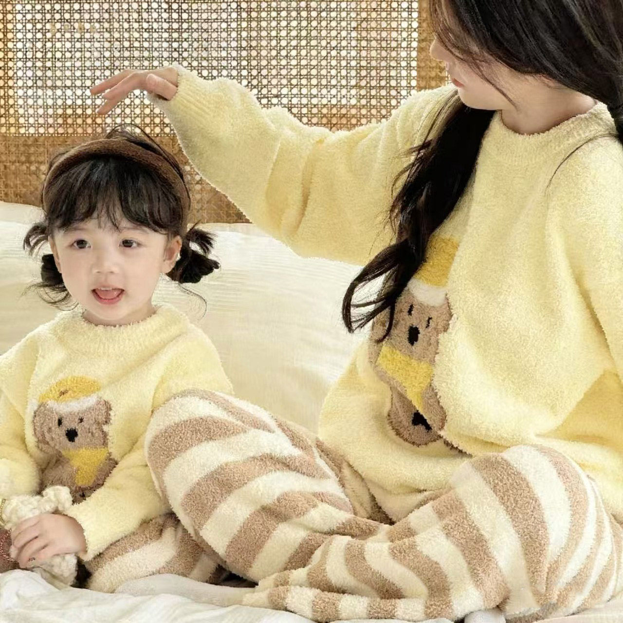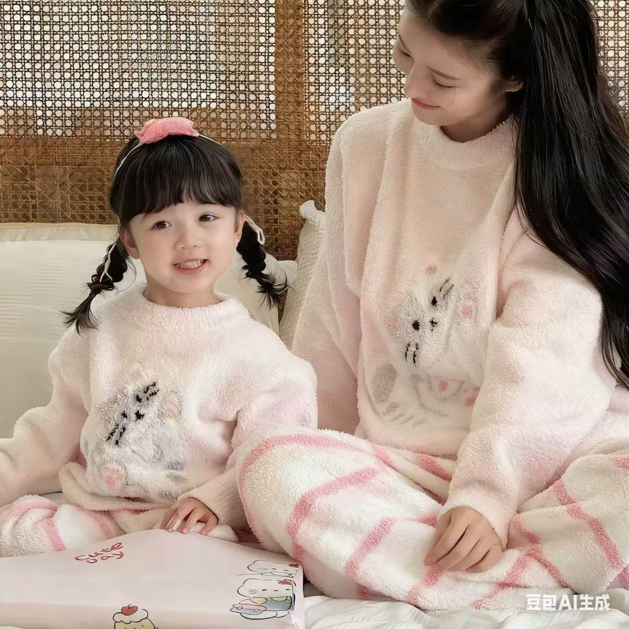 家居服亲子装套装男女童保暖睡衣网红休闲可爱半边绒儿童成人冬款