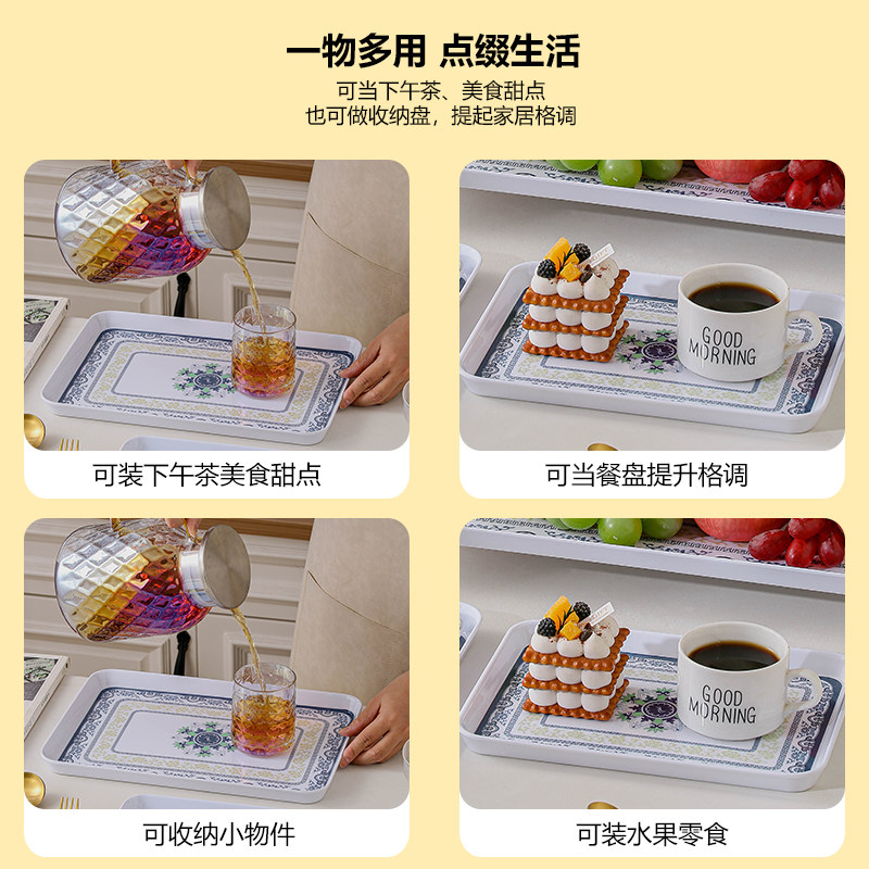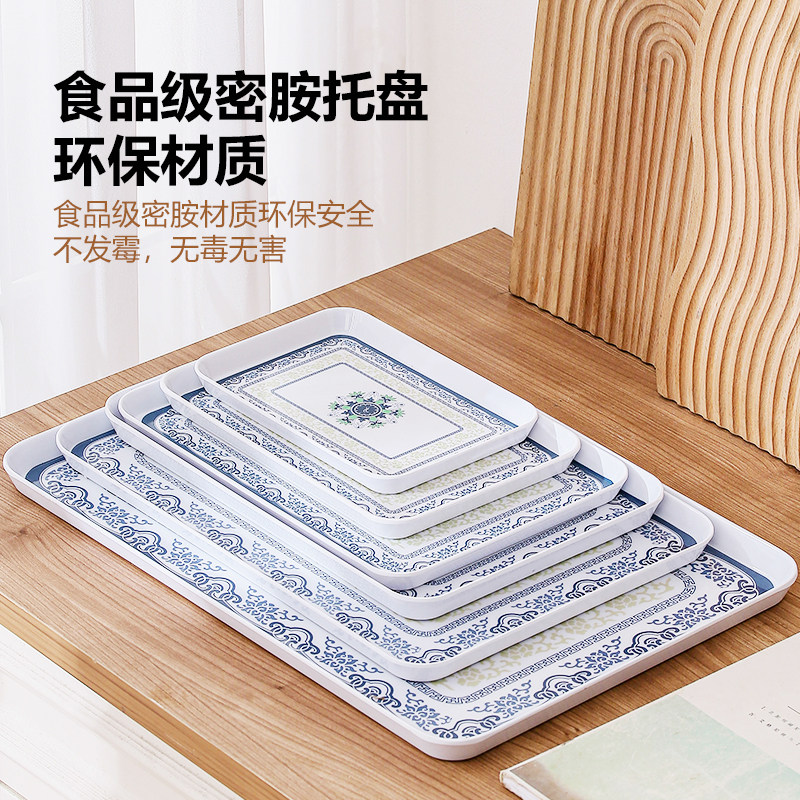 青花中式托盘塑料家用客厅长方形放茶杯茶盘水杯密胺钥匙串珠盘子