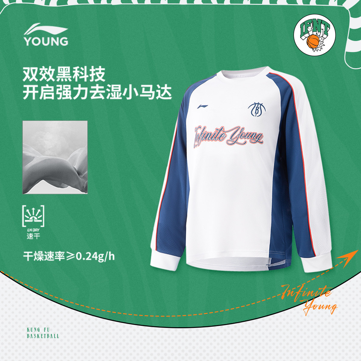 商场同款|李宁儿童速干长袖T恤男童装男孩上衣中大童篮球针织春装