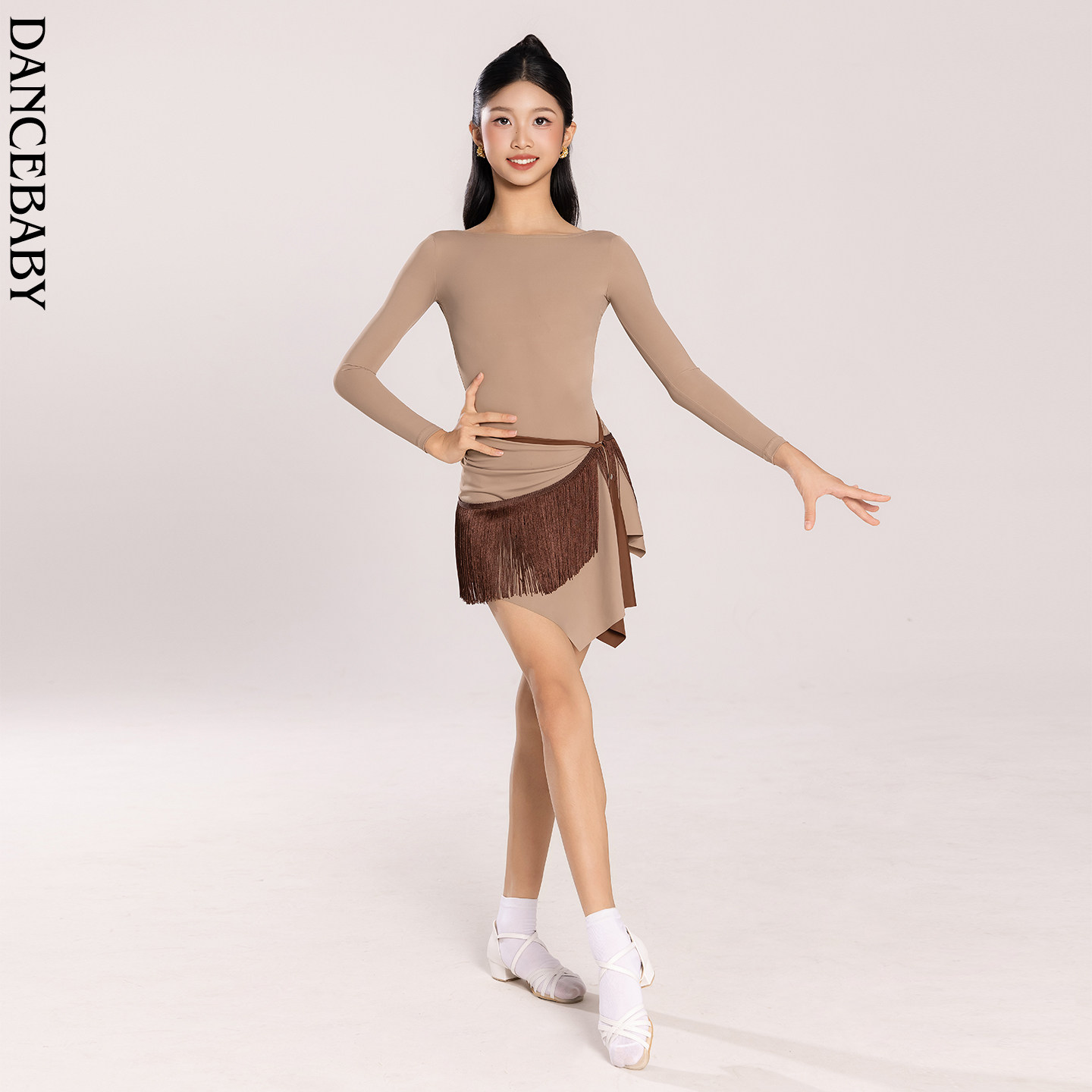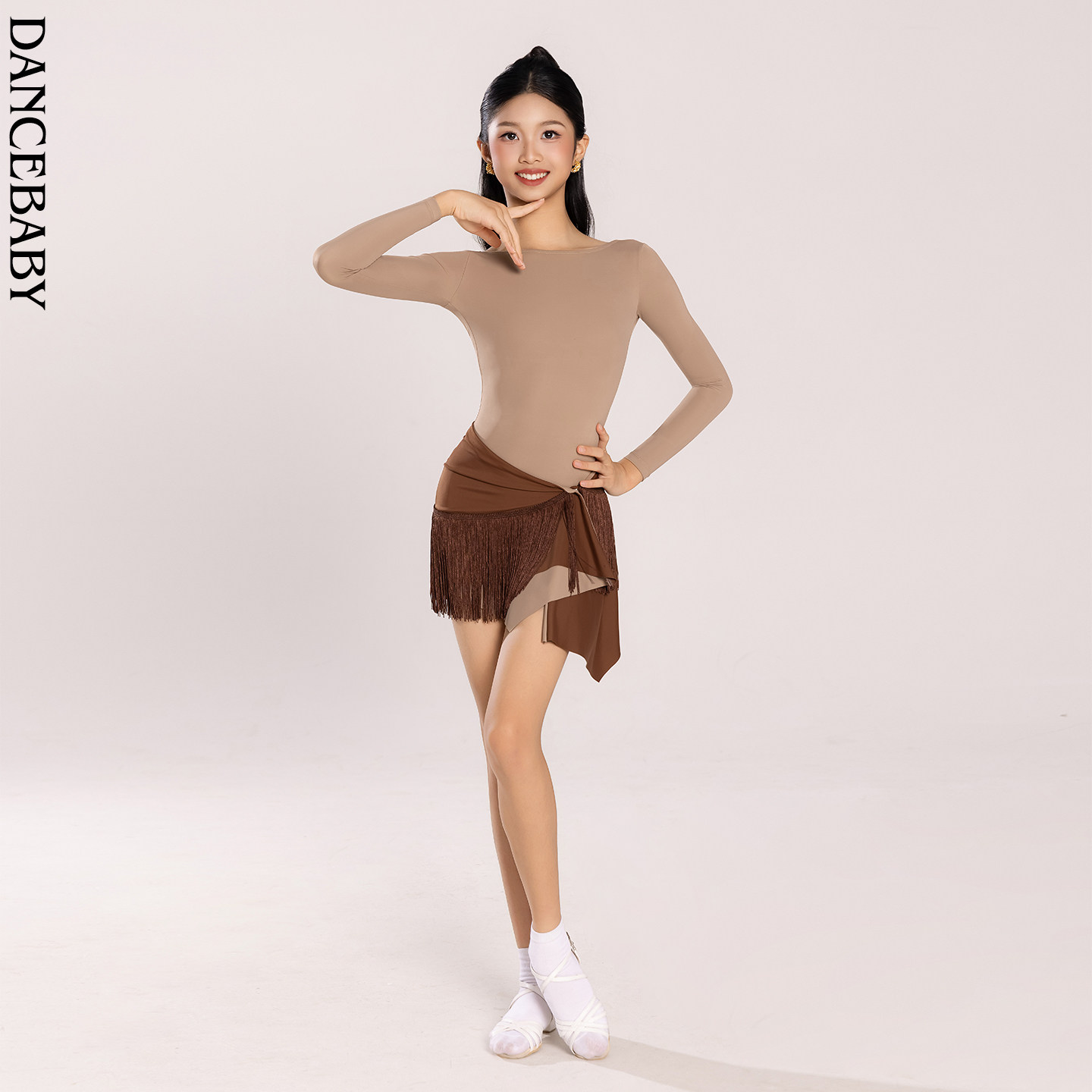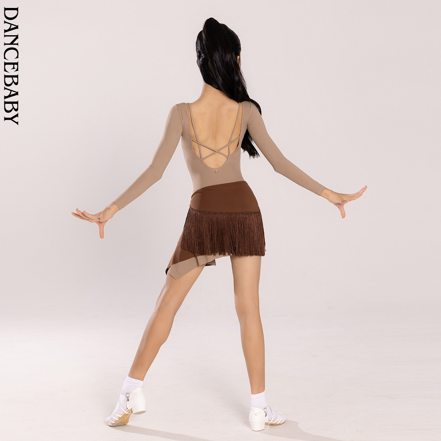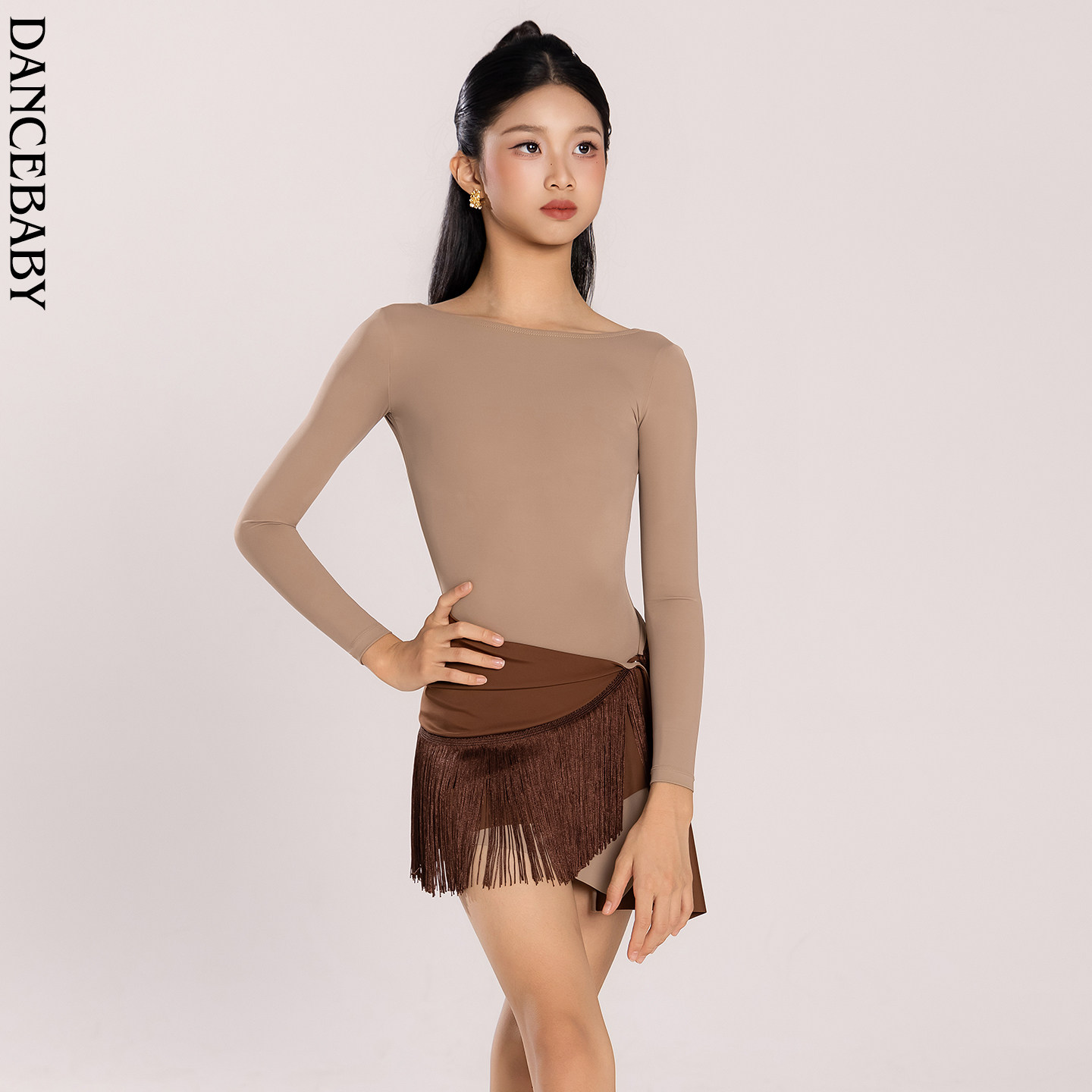 Dancebaby拉丁舞上衣新款2025新款国标舞服流苏半裙练习舞服服D49