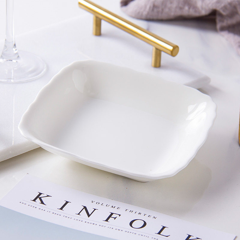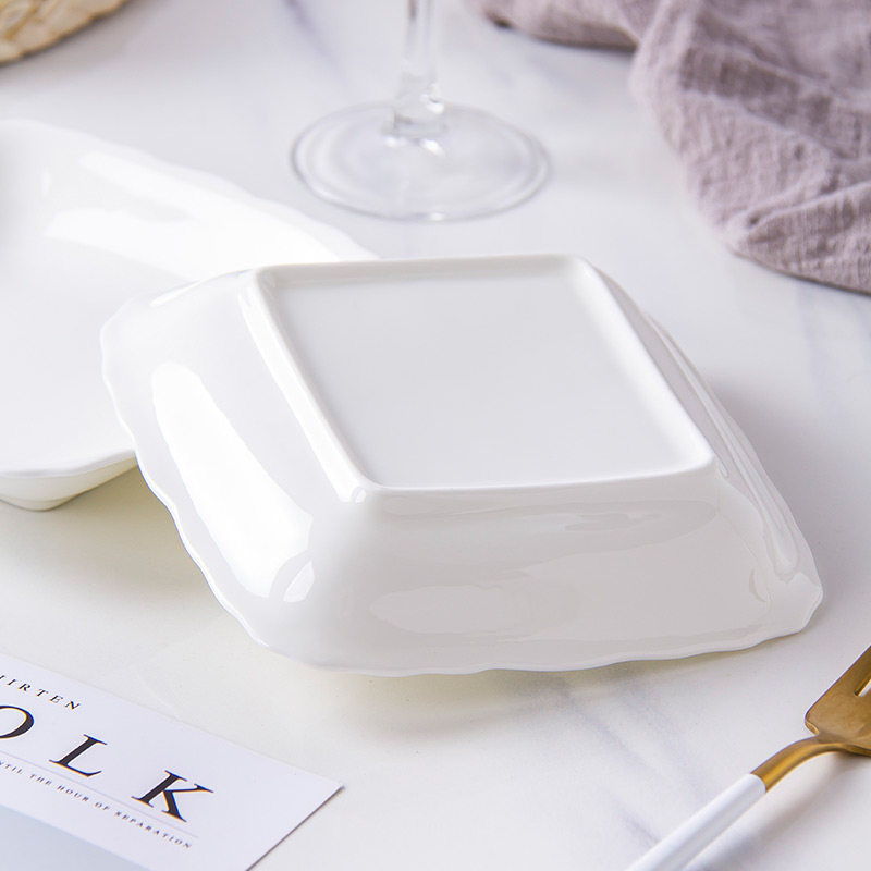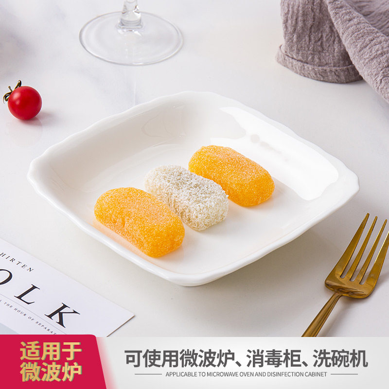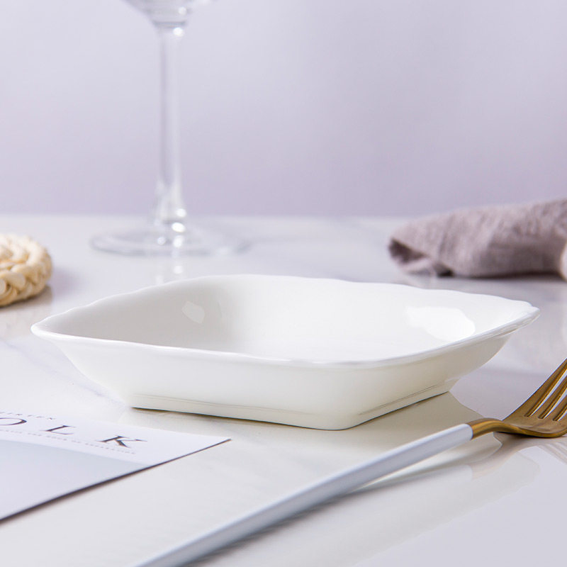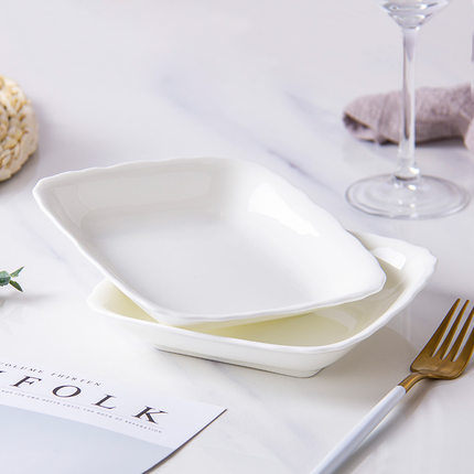 纯白骨瓷盘子菜盘家用陶瓷碟子创意水果盘方形网红菜碟中式餐具