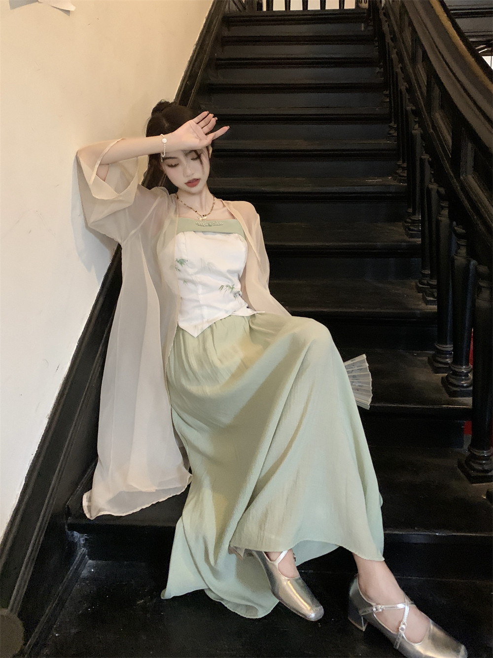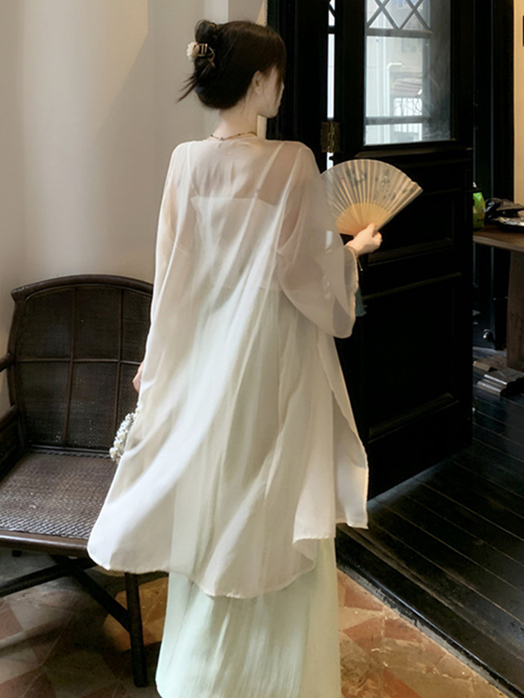国风新中式雪纺冰丝防晒衫外套女夏季透气薄款中长款开衫披肩上衣