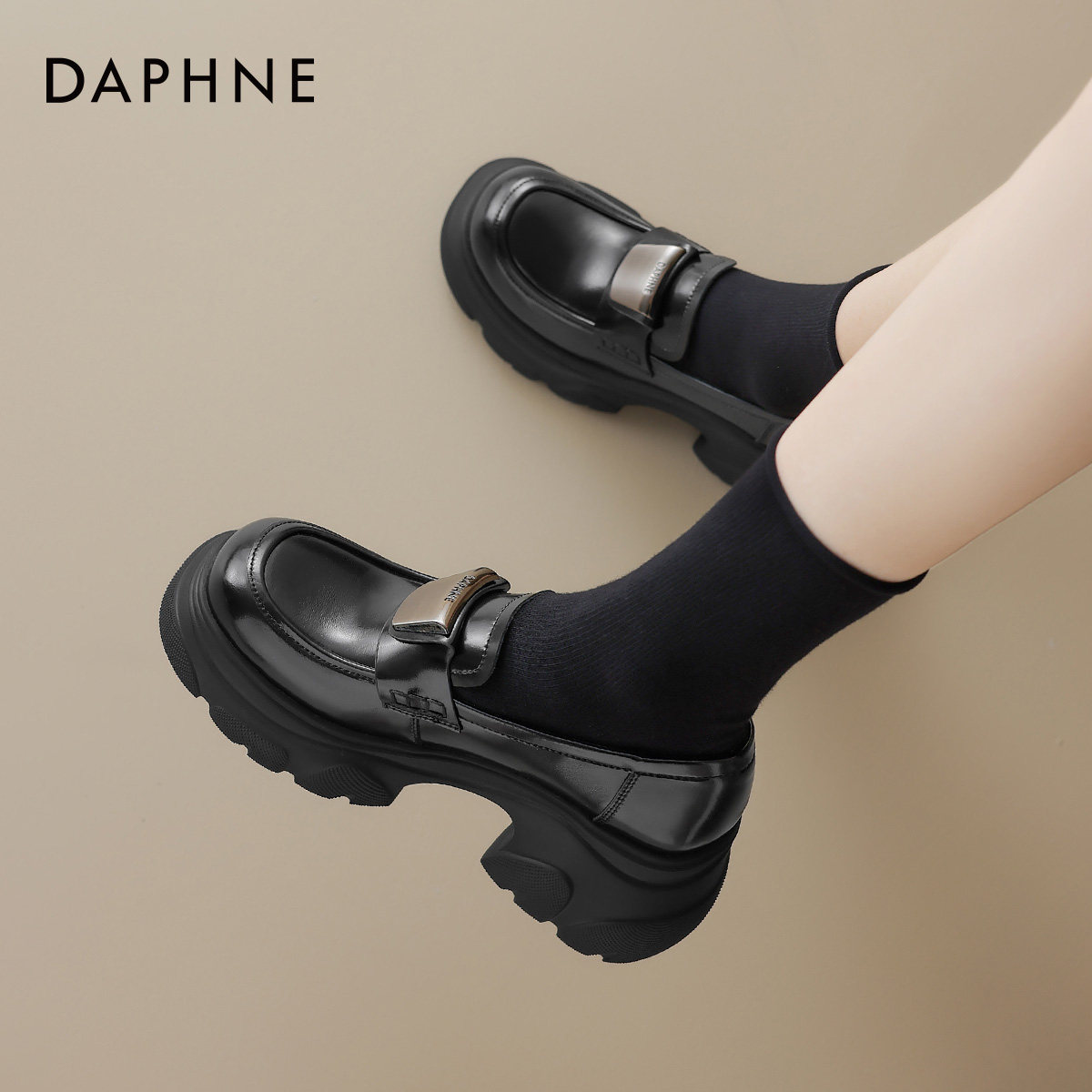 达芙妮厚底乐福鞋女2025新款秋冬英伦风小皮鞋增高单鞋法式高跟鞋