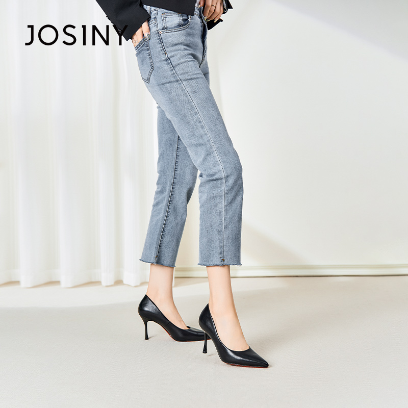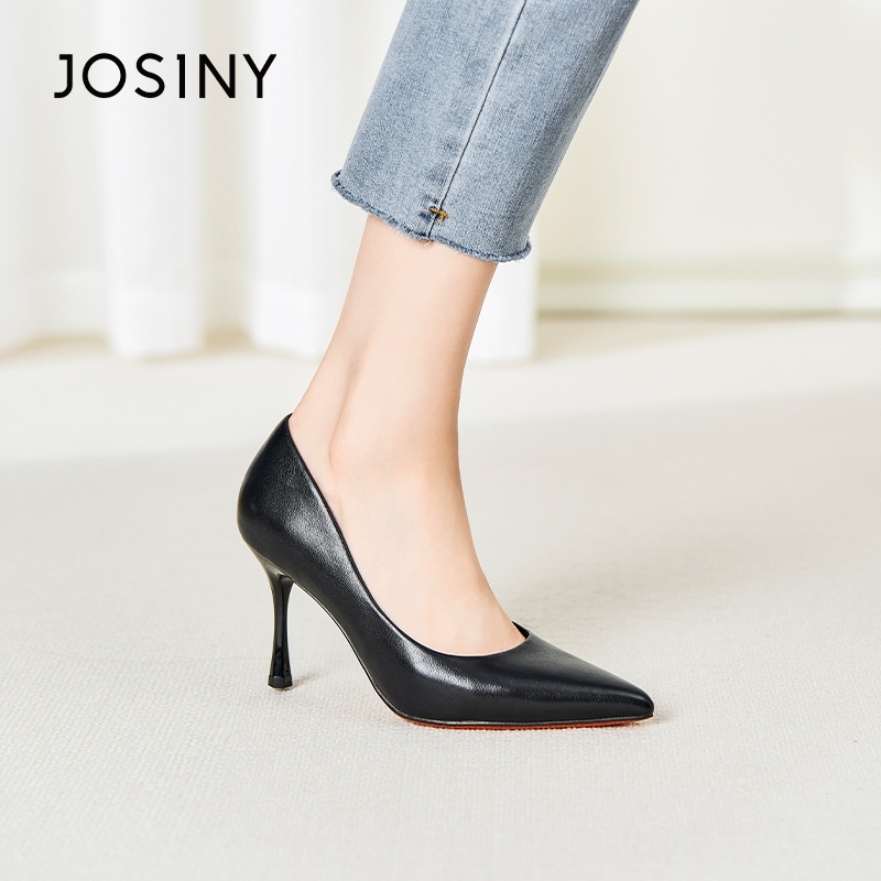 卓诗尼高跟鞋女鞋新款夏季凉鞋女时尚细跟尖头一字带露趾凉鞋