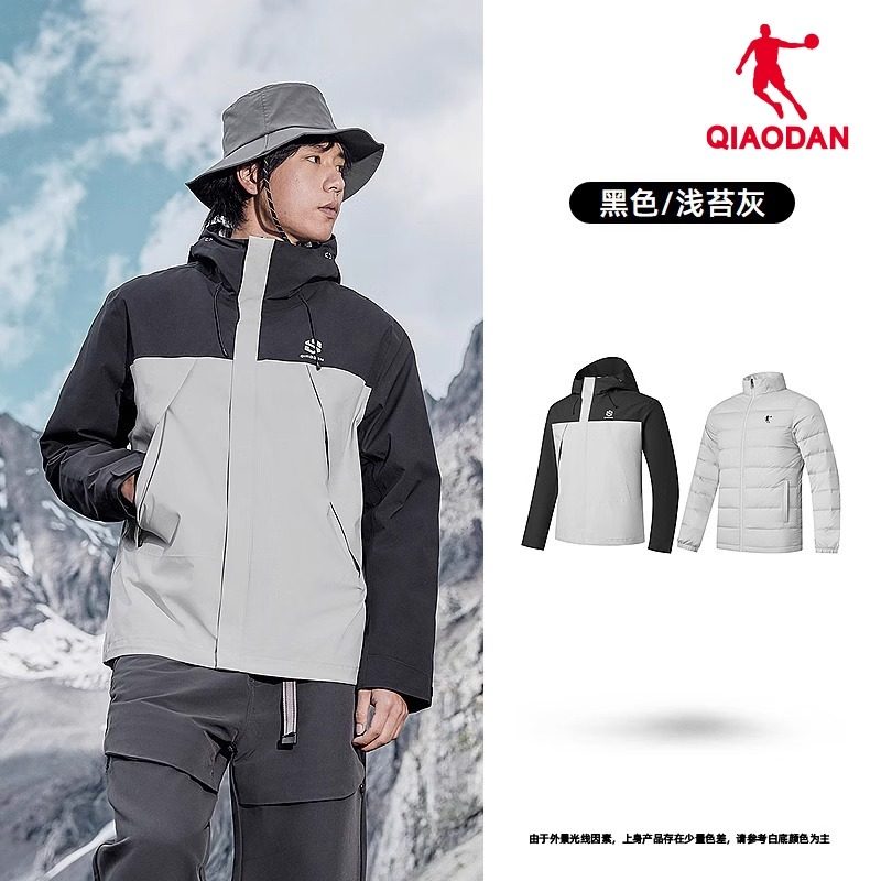 乔丹山神系列三合一冲锋衣男2025冬季户外保暖外套羽绒内胆两件套