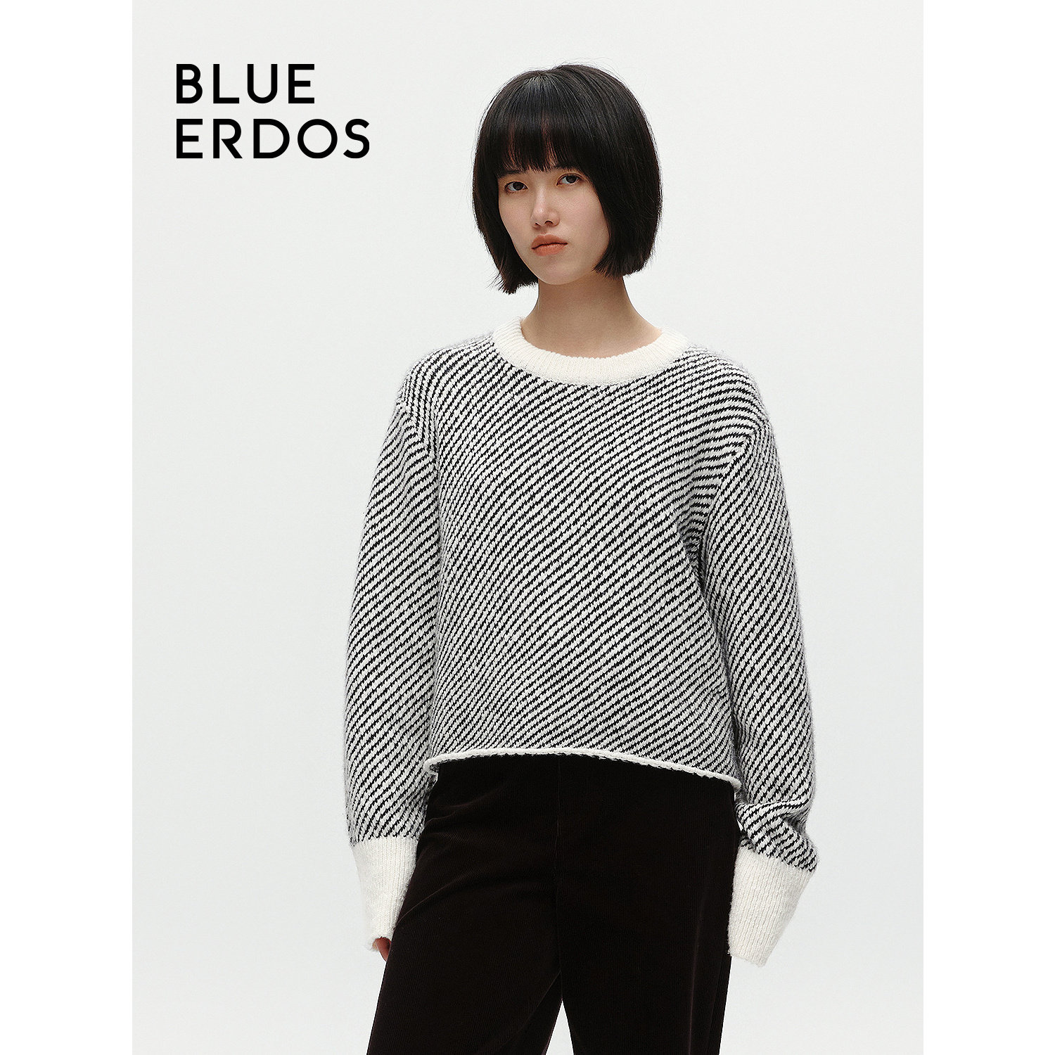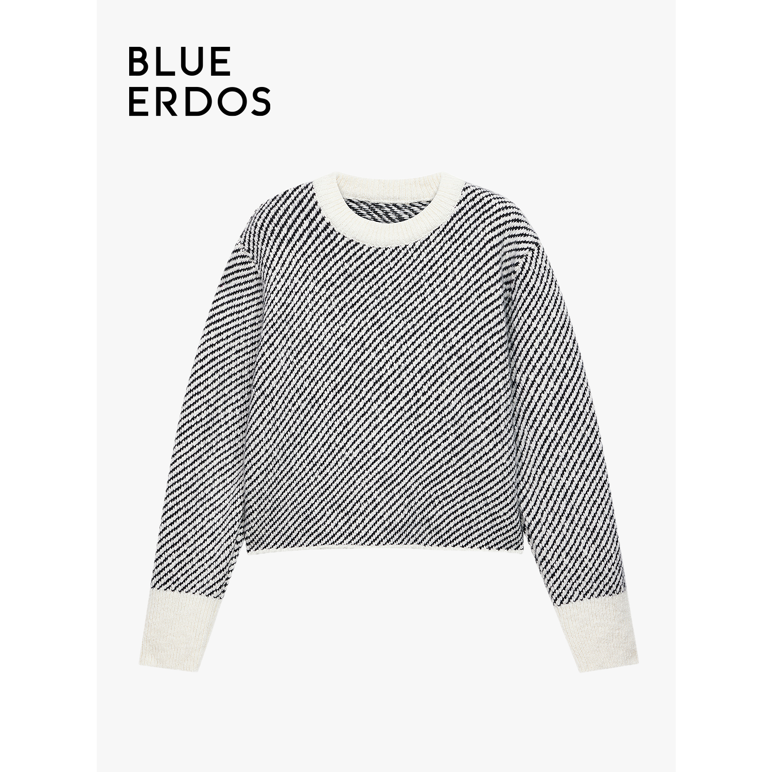 BLUE ERDOS 简约直筒圆领黑白翻花针织衫B246A0069