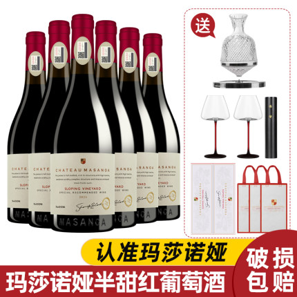 玛莎诺娅坡地半甜红葡萄酒法国14度红酒整箱6支装送酒杯酒具750ml