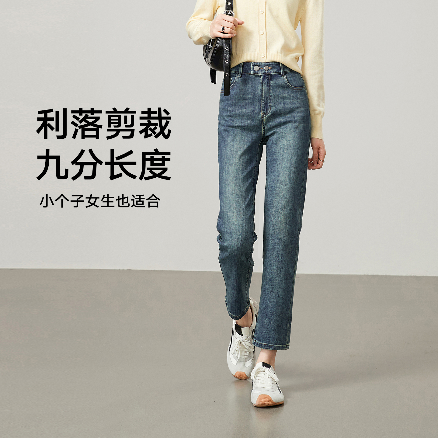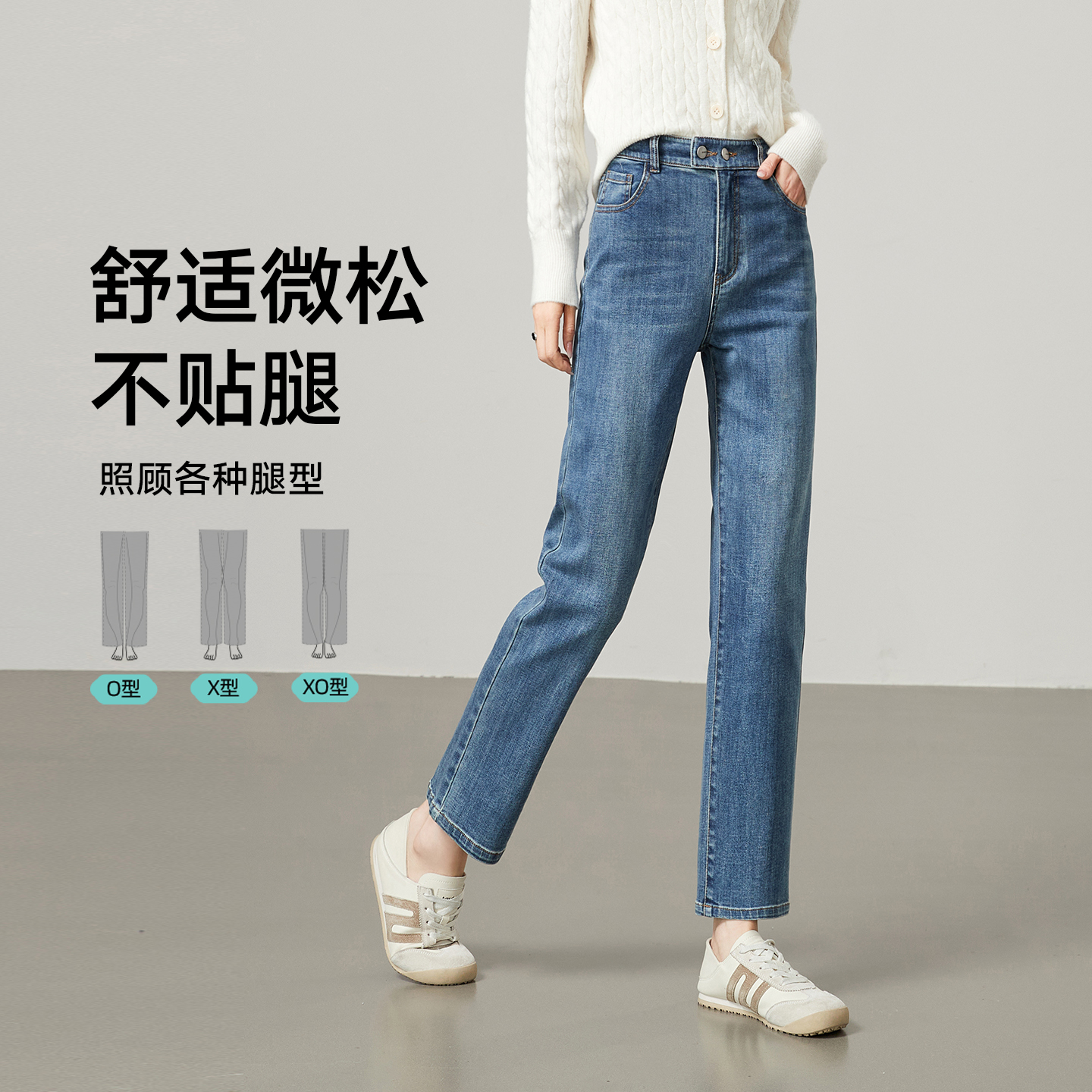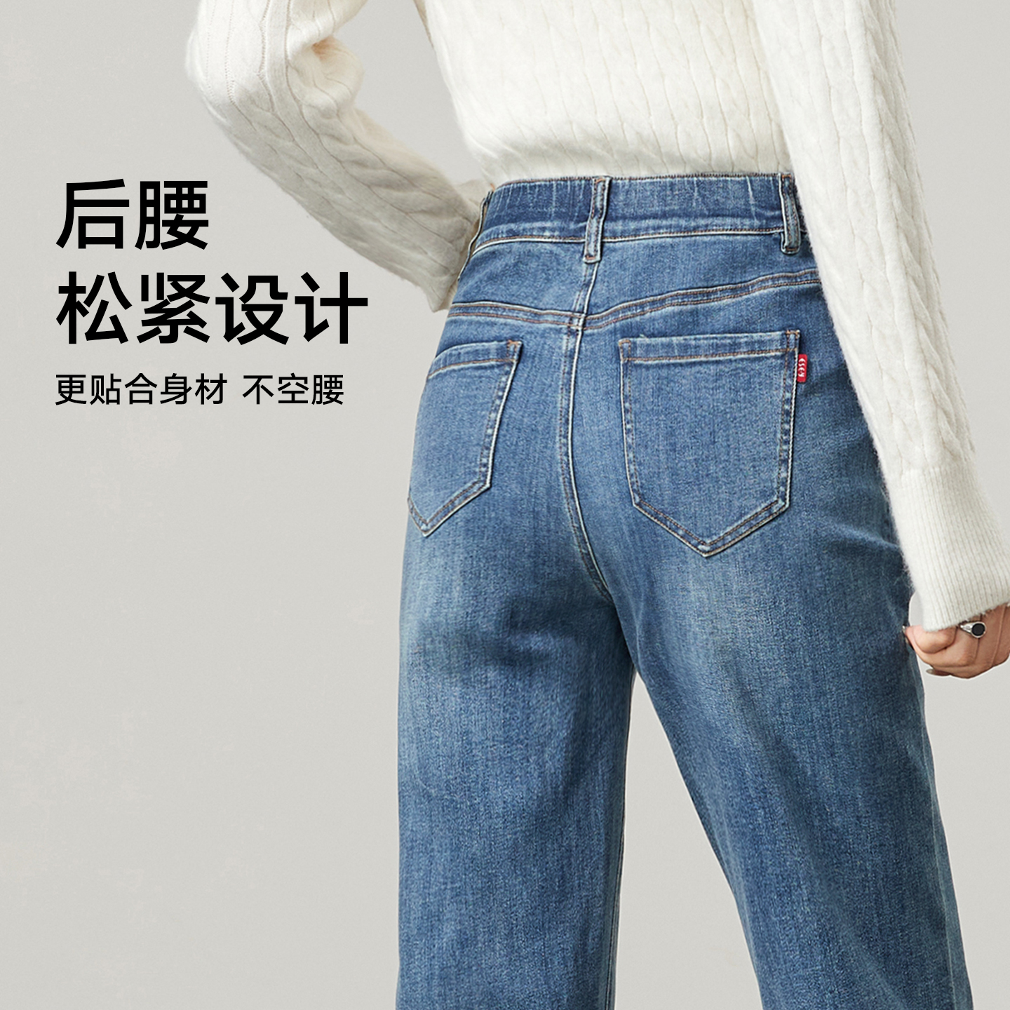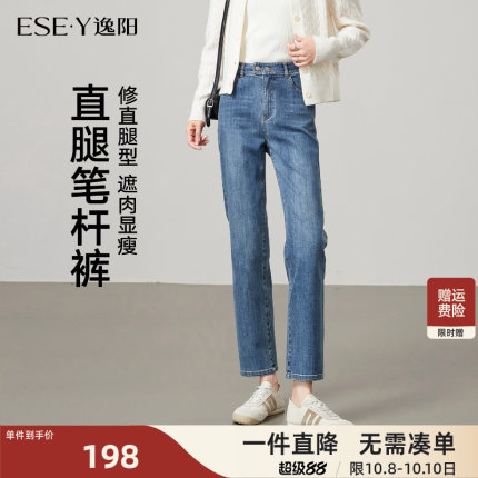 逸阳九分高弹直筒牛仔裤女2025年秋季新款微宽松显瘦烟管法棍裤子