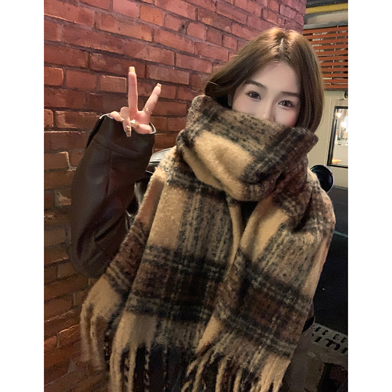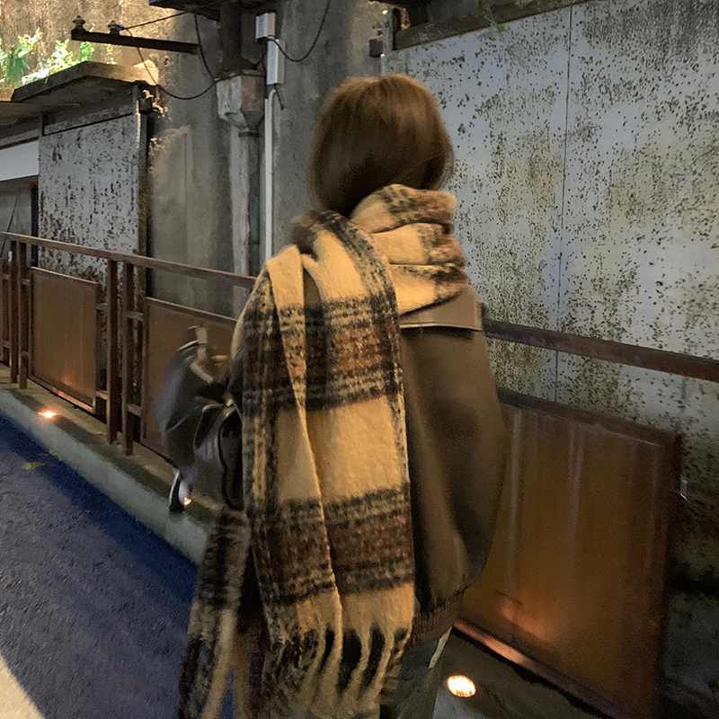 美拉德风棕色仿羊绒围巾女冬季高级感流苏马海毛加厚围脖学生新款