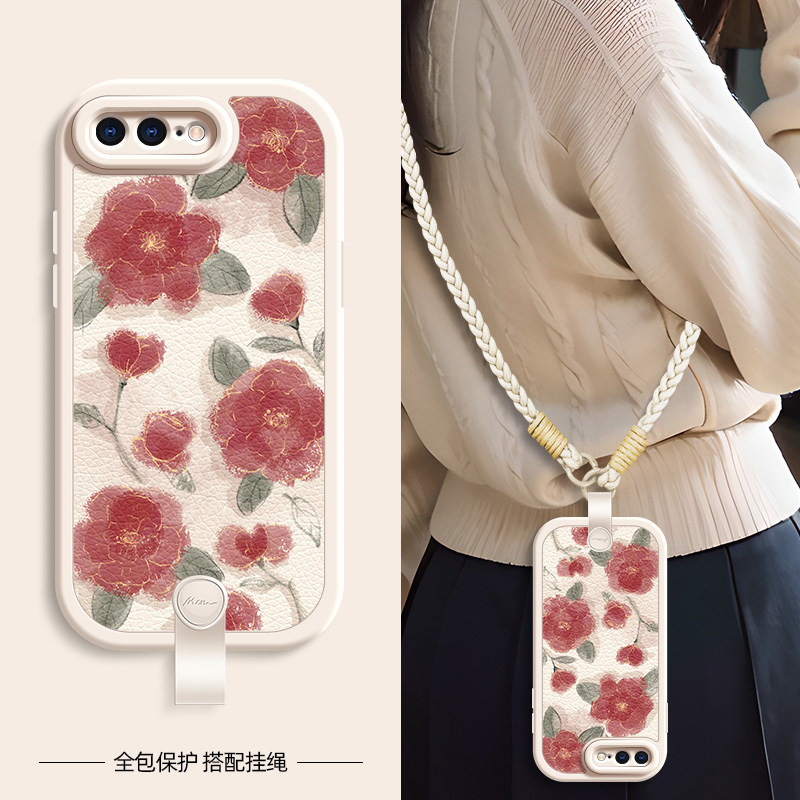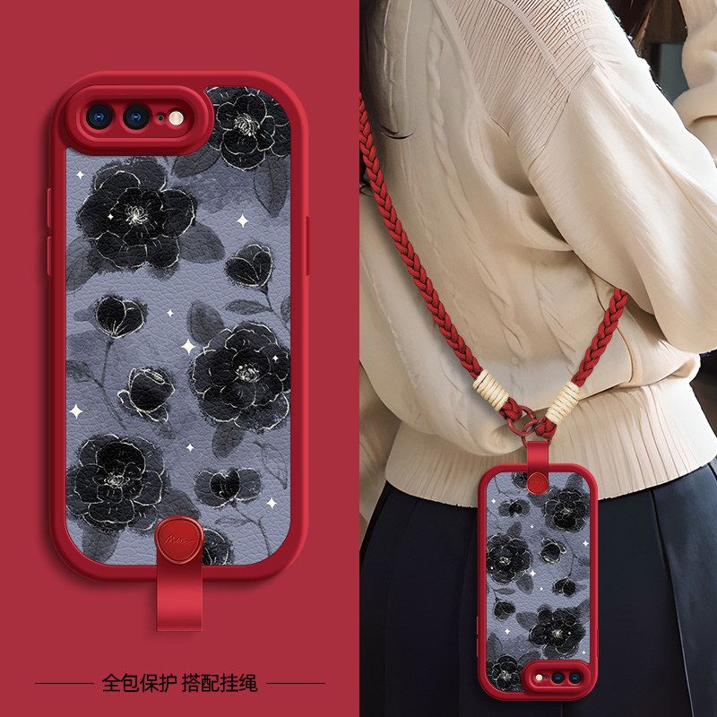 红玫瑰花适用苹果11ProMax手机壳iphoneX套7/8plus新款x/xr新春新年挂绳iphone11pro可背6splus女款xsmax