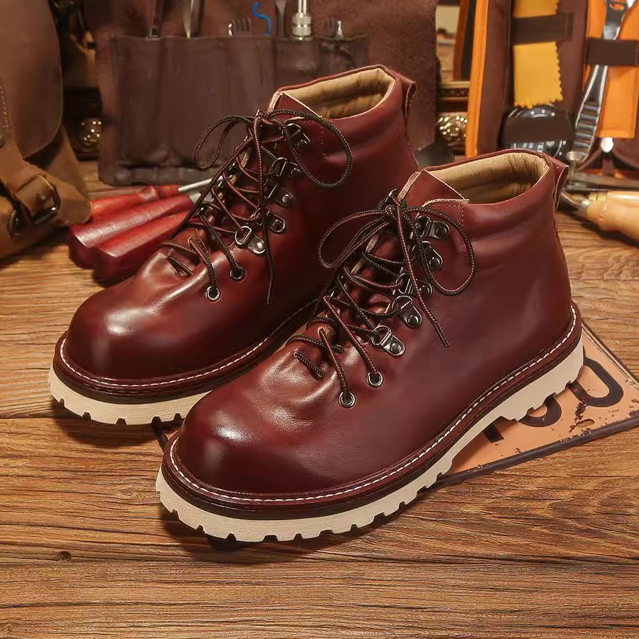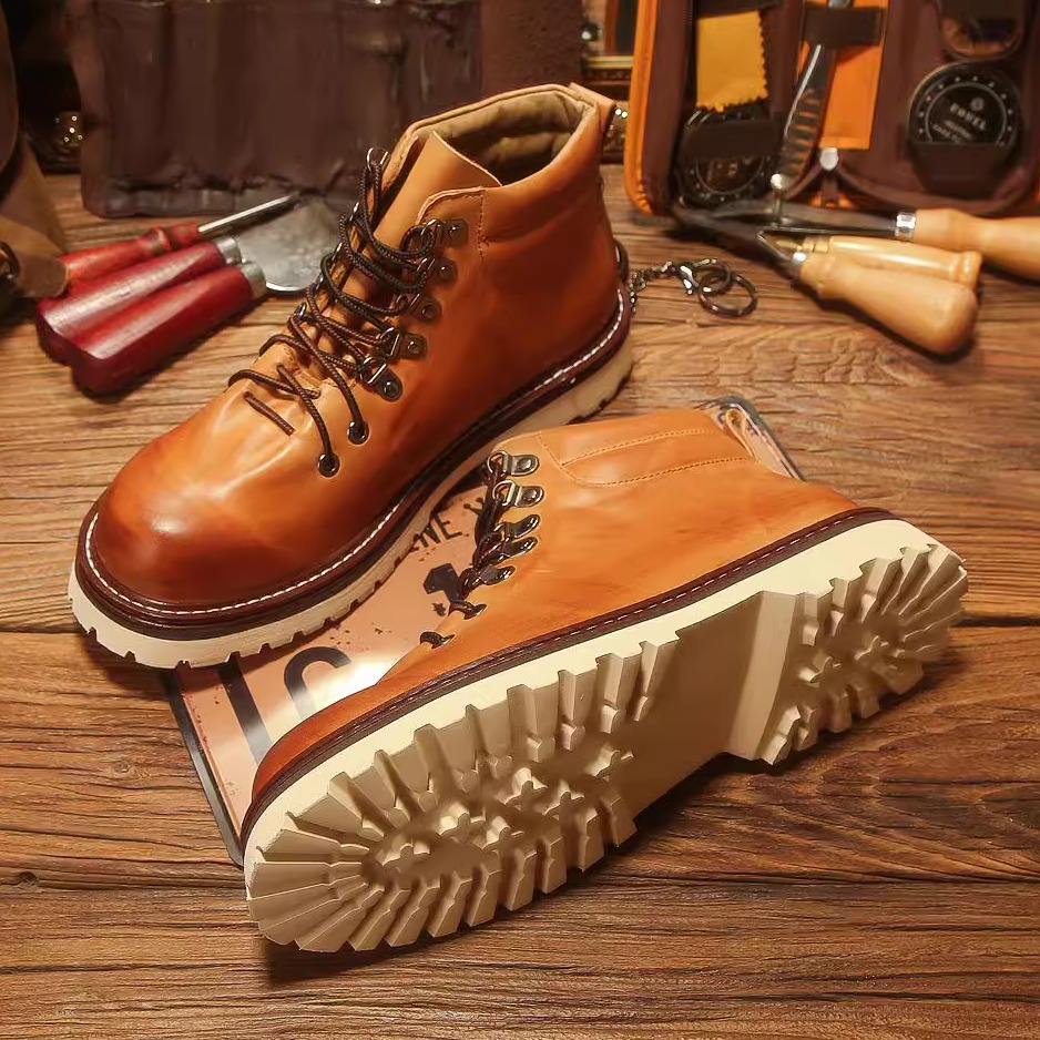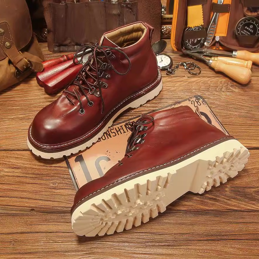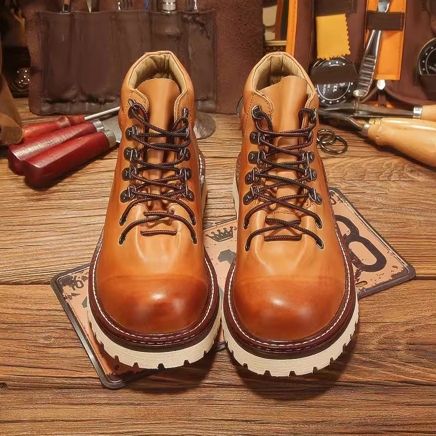 2025秋季新款马丁靴男高帮英伦风复古真皮皮鞋休闲头层牛皮工装靴