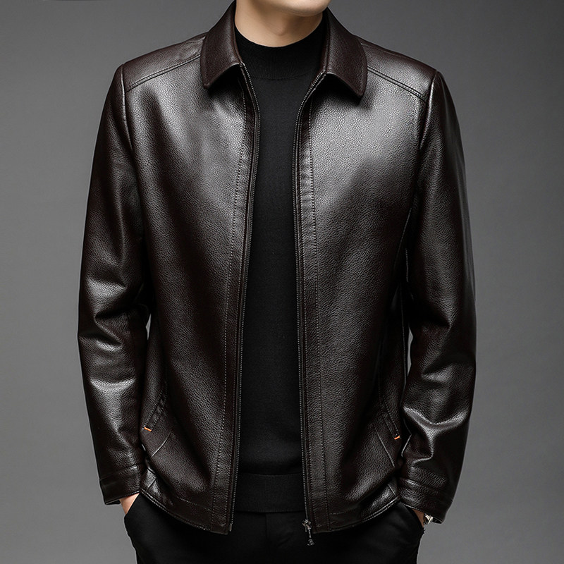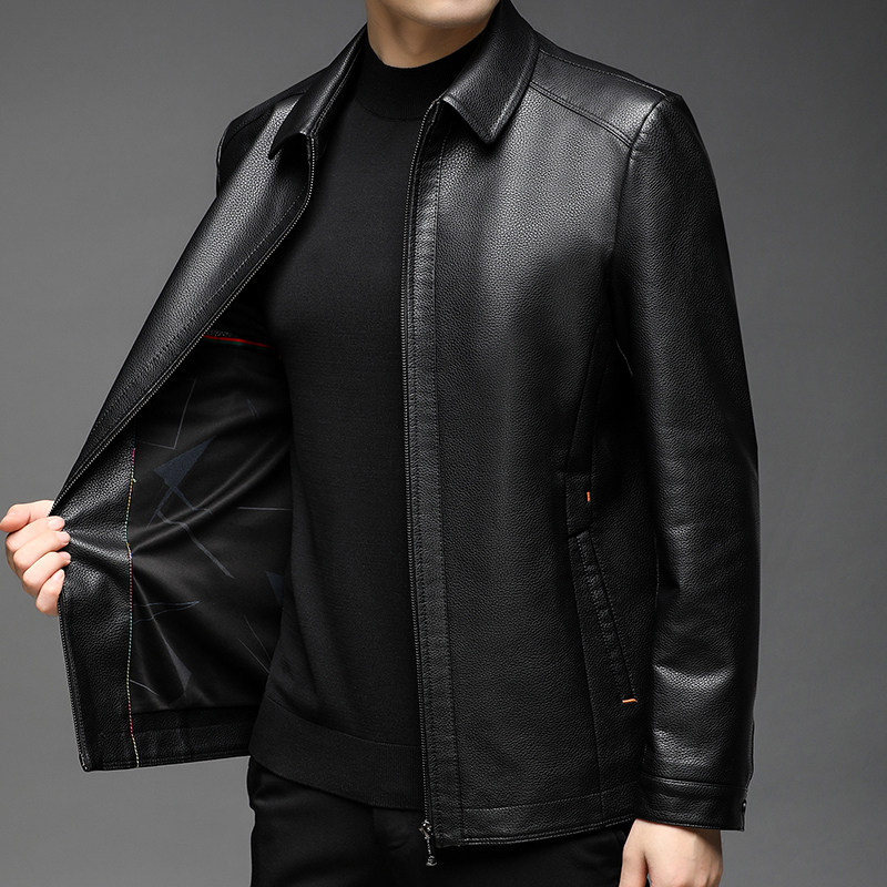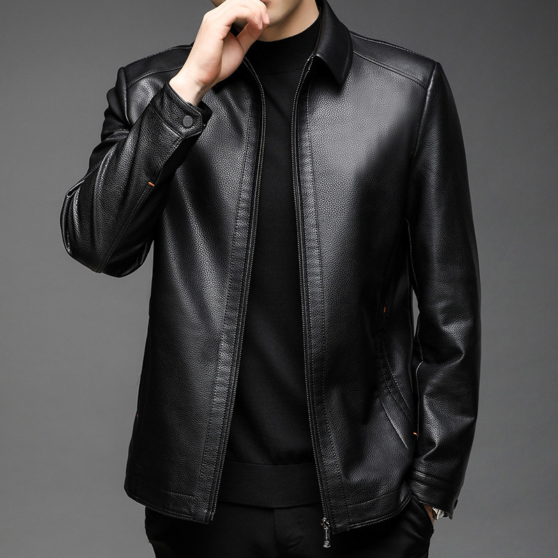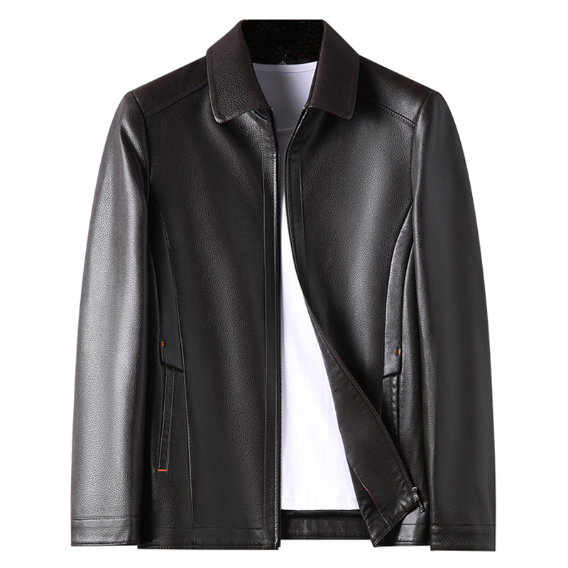 海宁进口头层牛皮皮衣男加绒加厚短款中年秋冬真皮皮夹克爸爸外套
