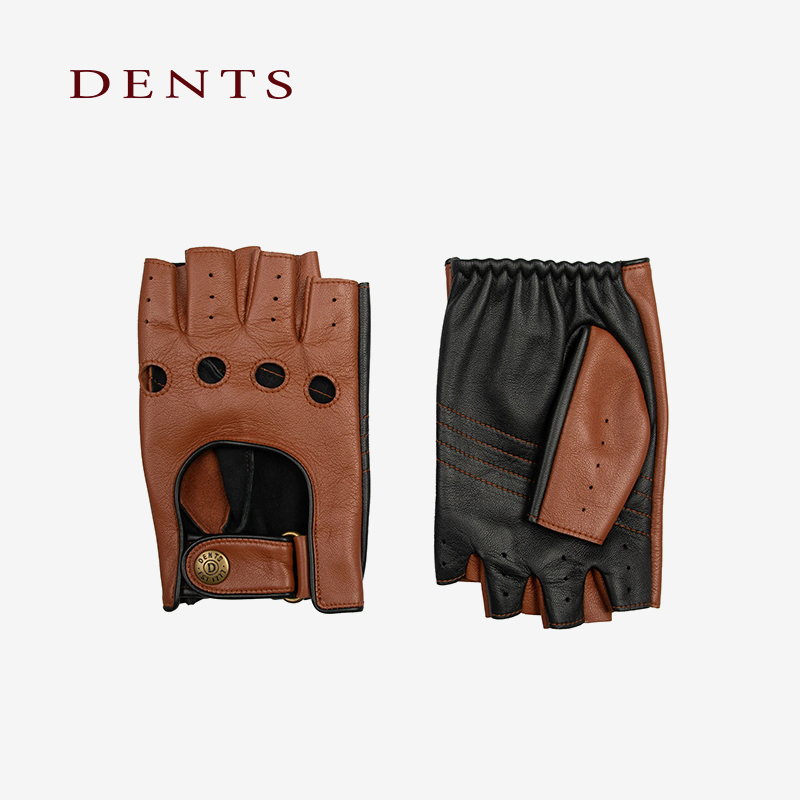 25秋新款|DENTS毛羊皮透气男士骑行机车户外拼色半指手套5-1015