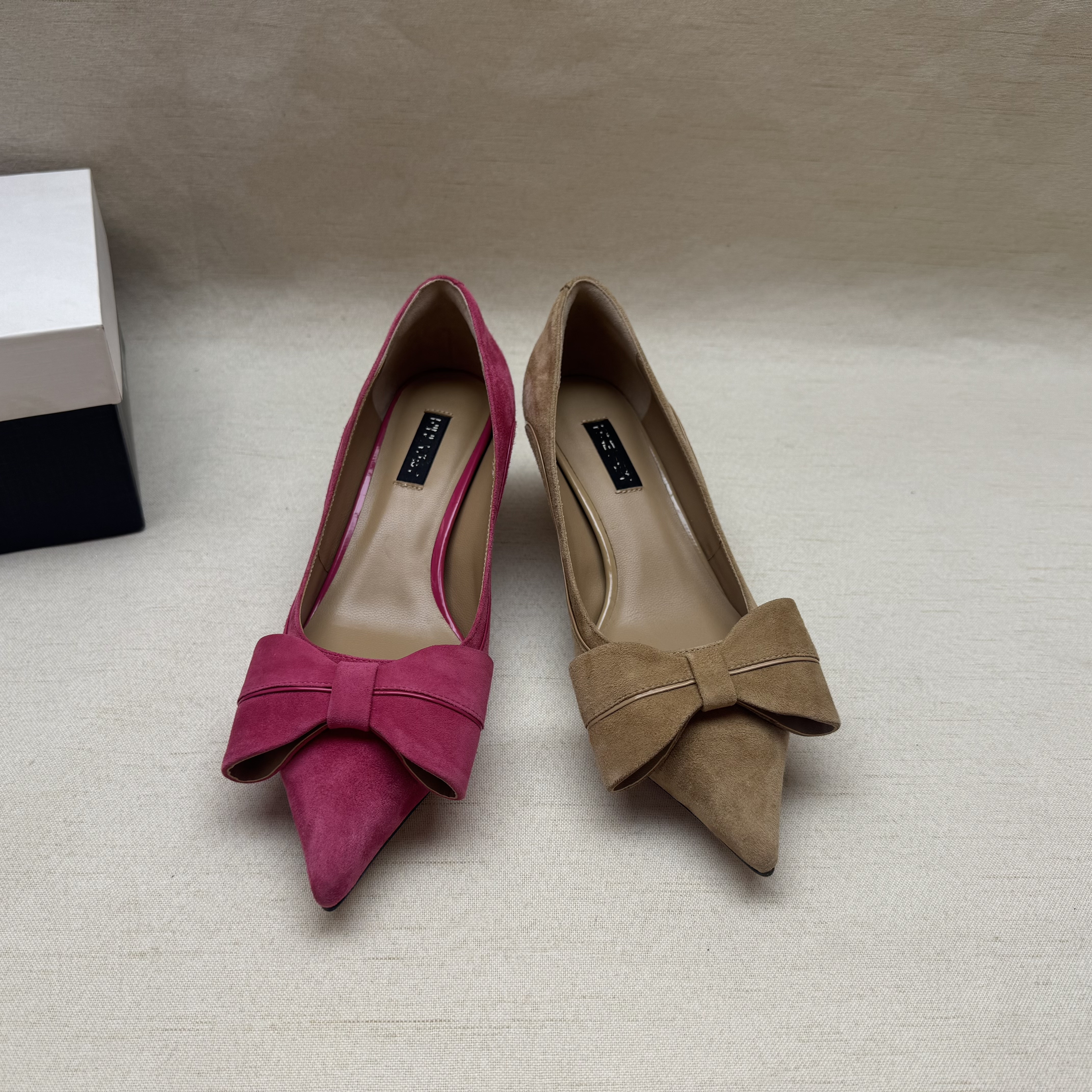 美国轻奢品牌撤柜正品浅口真皮中跟蝴蝶结春新款气质温柔优雅女鞋