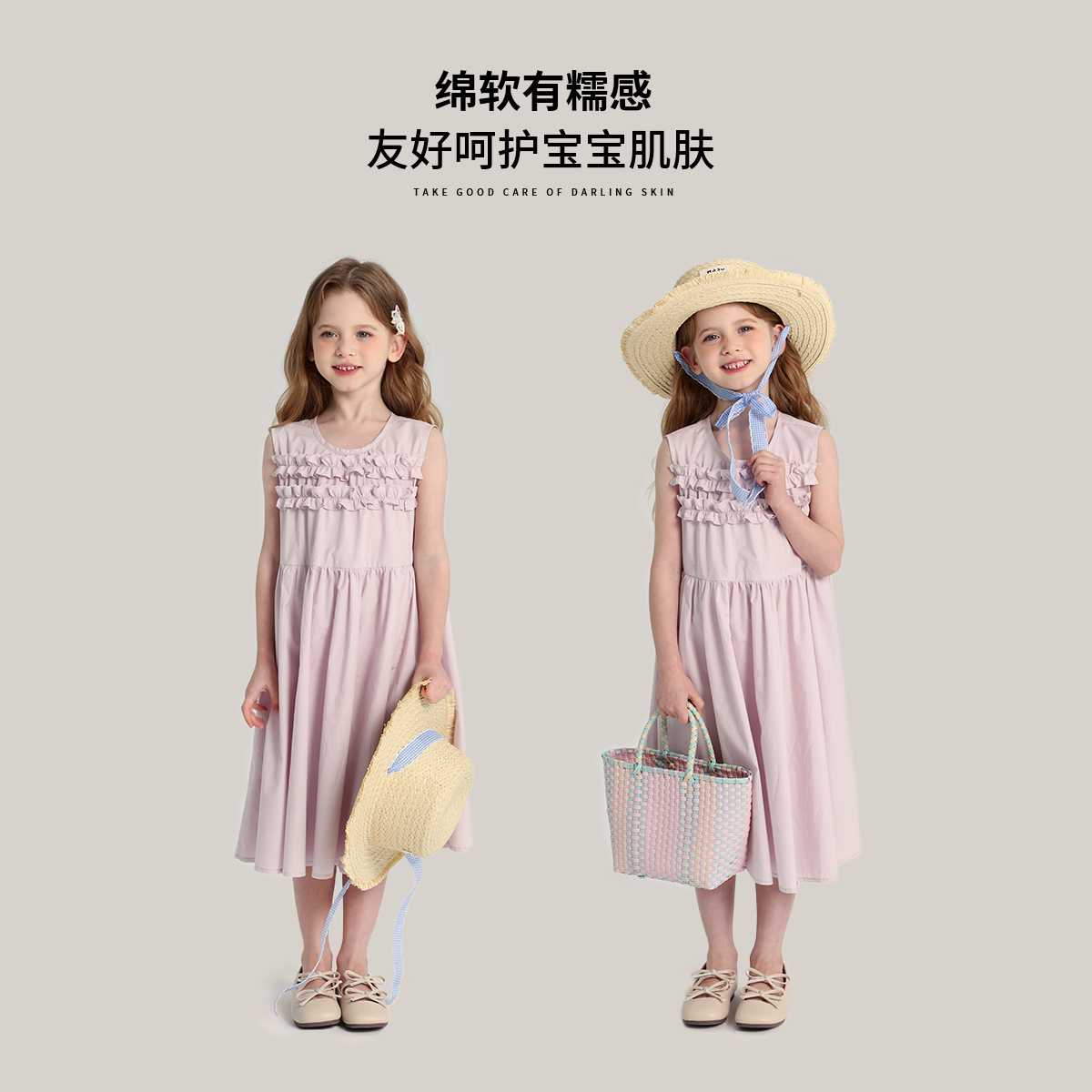 布丁哈鲁童装夏装女童洋气裙子2025新款儿童百搭粉色无袖连衣裙