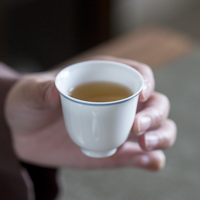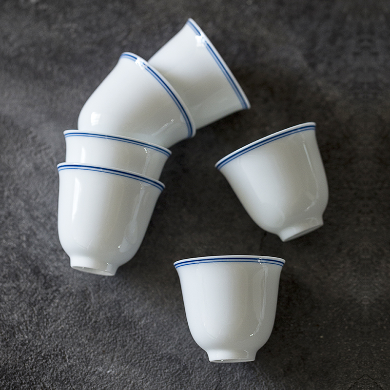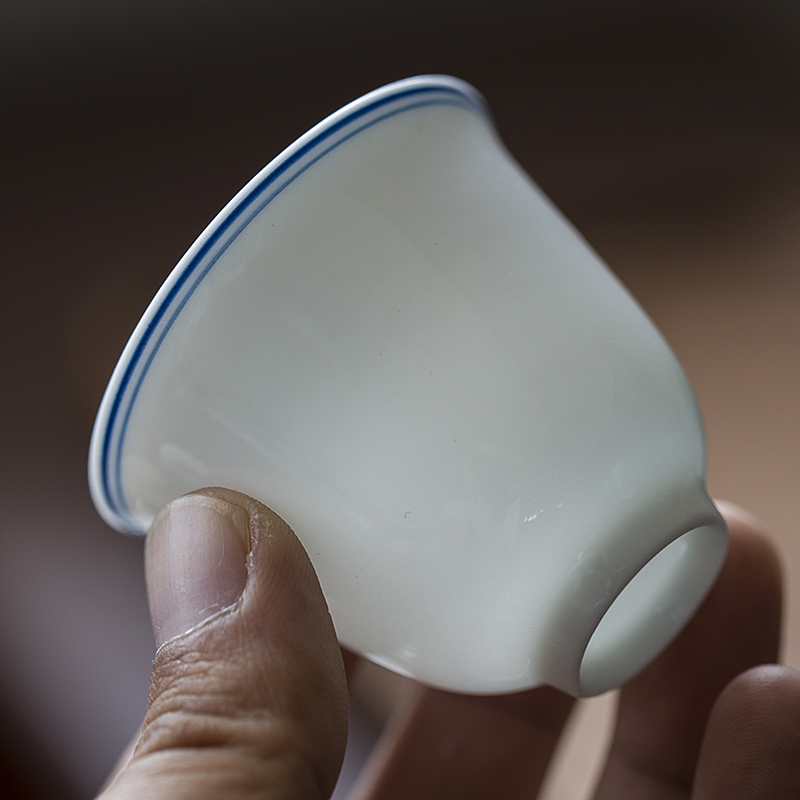 白瓷薄胎手绘子母线小茶杯单杯品茗杯主人杯个人杯功夫茶具陶瓷杯