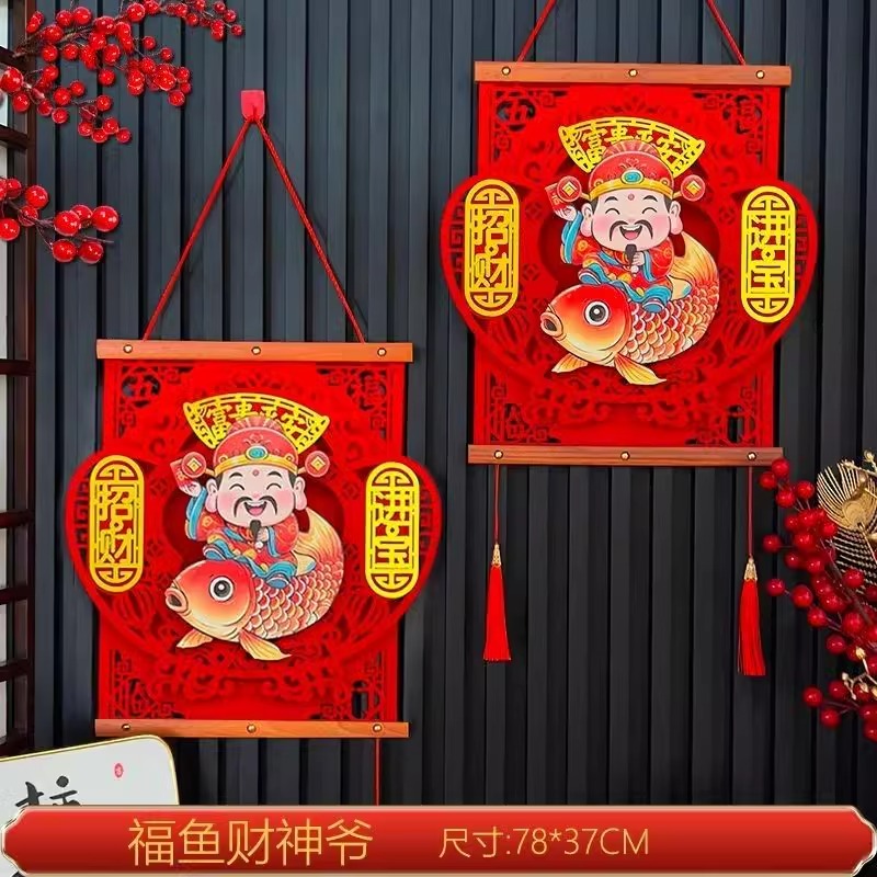 2025新年摇头财神春节红木福字挂件玄关客厅家居装饰过年喜庆挂饰