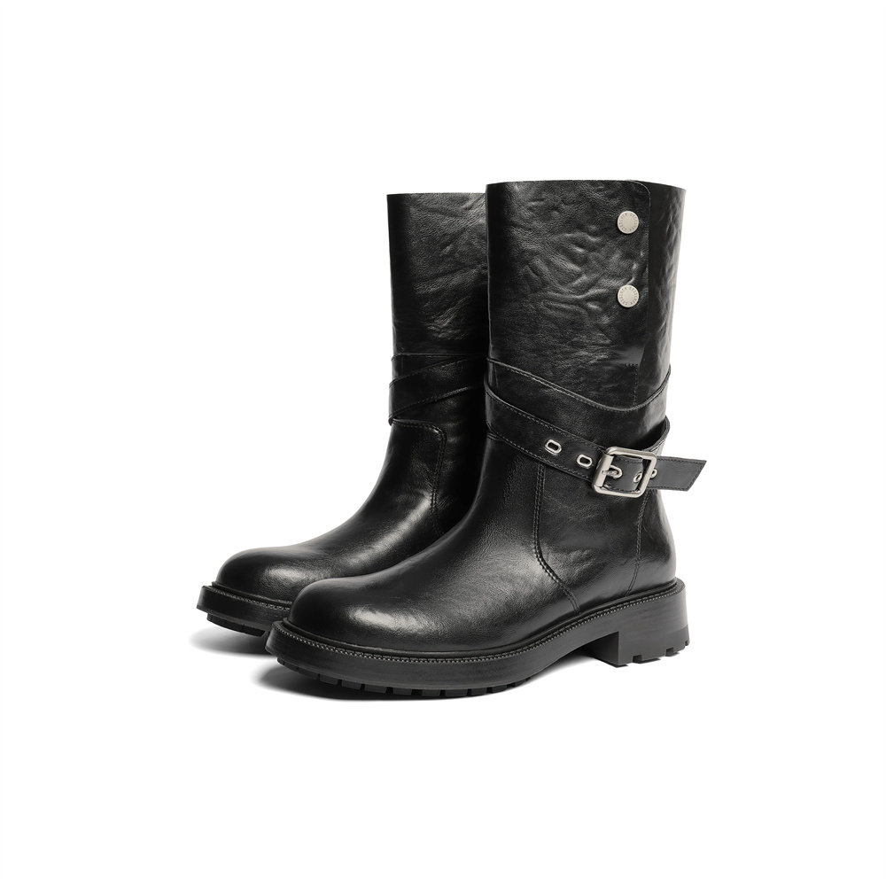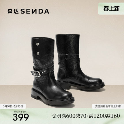 森达时装靴女冬新商场同款皮带扣潮流休闲中靴XVL01DG5