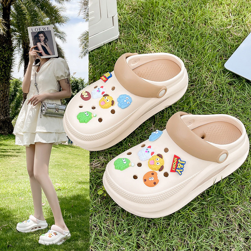 爆款小怪兽EVA洞洞鞋女夏季2024新款时尚外穿沙滩包头增高凉拖鞋