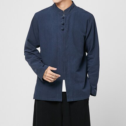 中国风男装秋冬盘扣长袖衬衫中式亚麻衬衣中华立领外套唐装居士服
