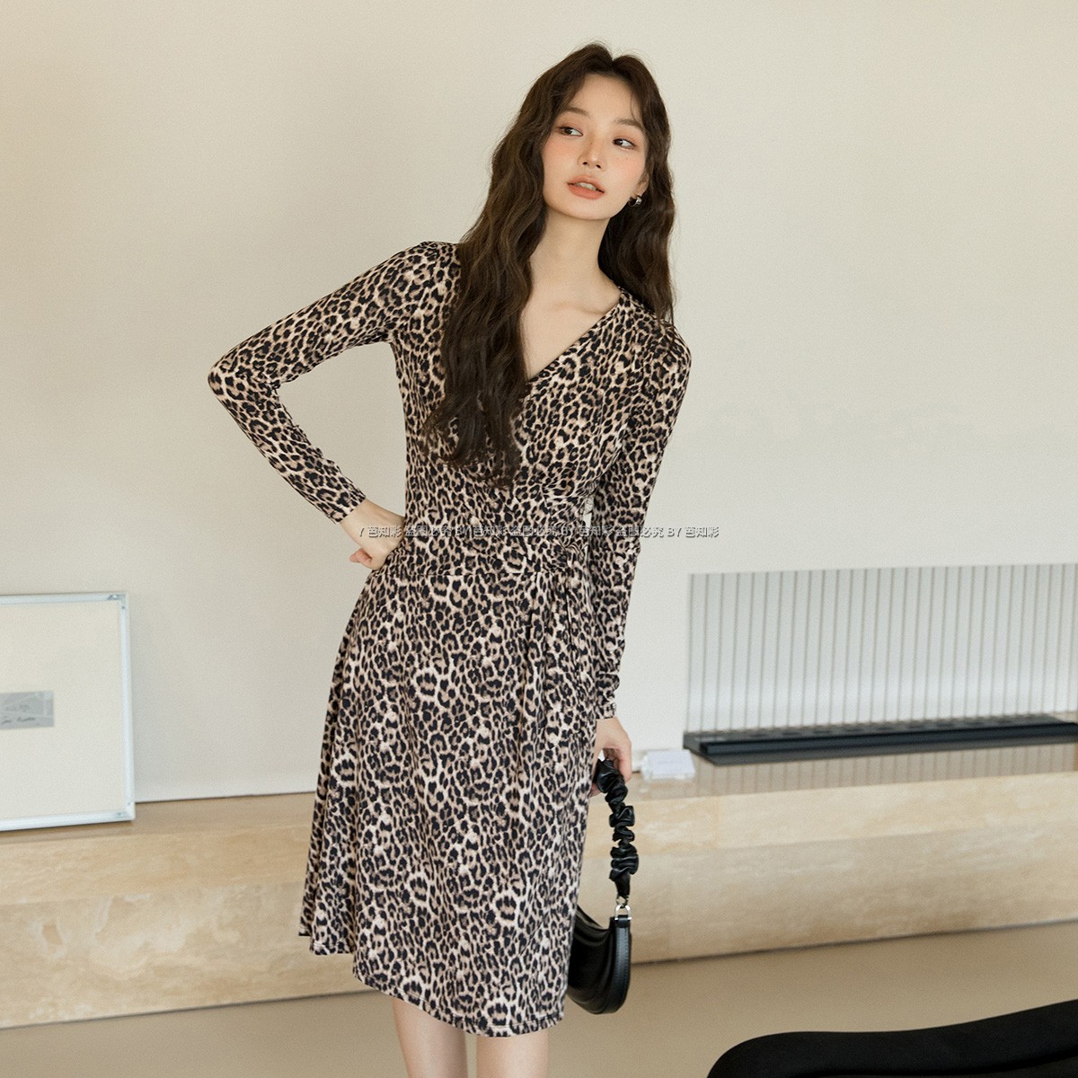 气质时尚印花水晶麻优雅连衣裙