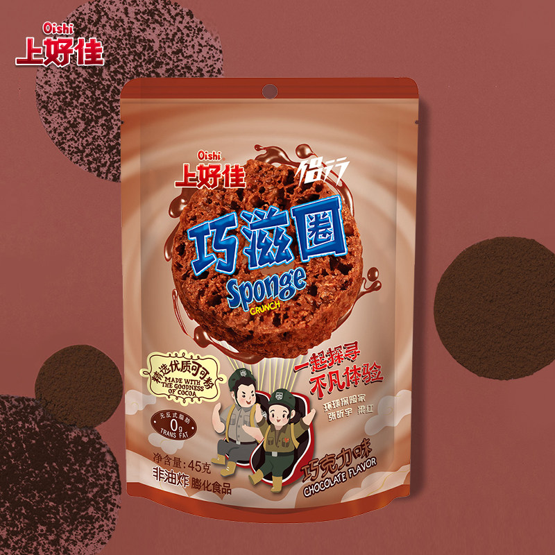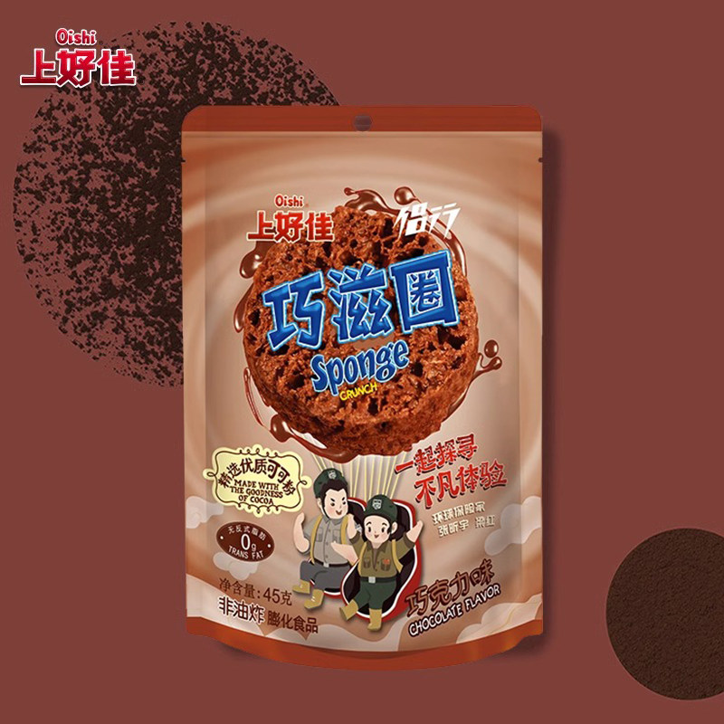 Oishi上好佳X侣行 休闲零食巧滋圈巧克力味网红食品小吃45g/袋
