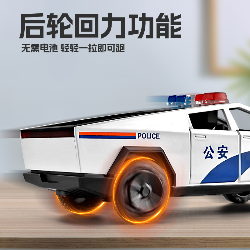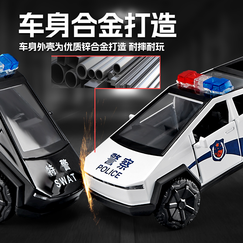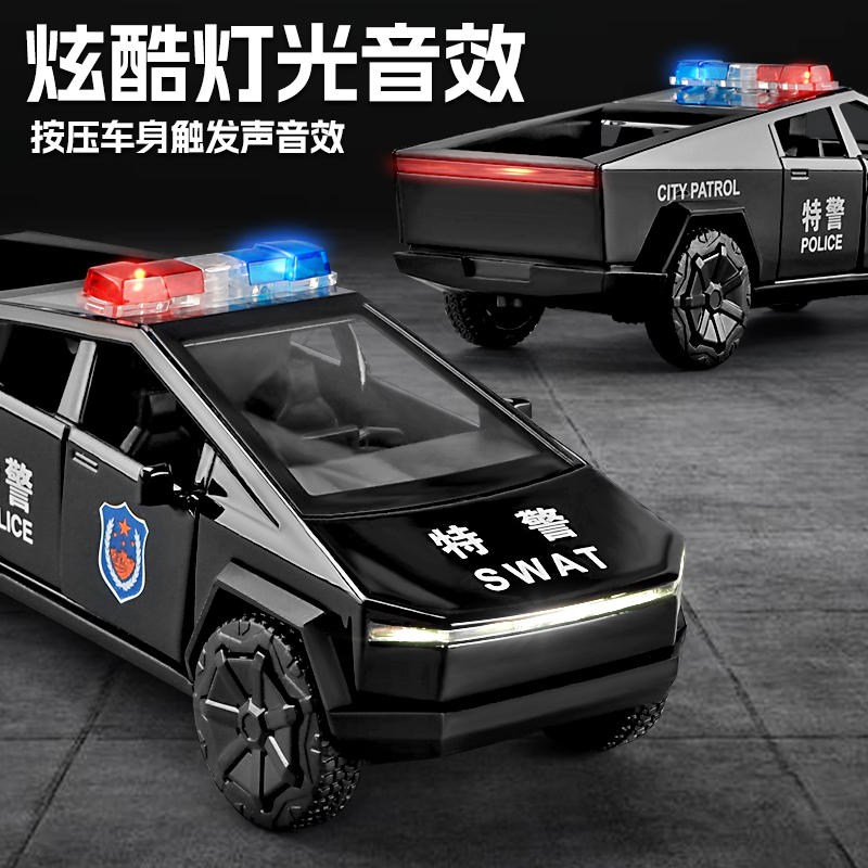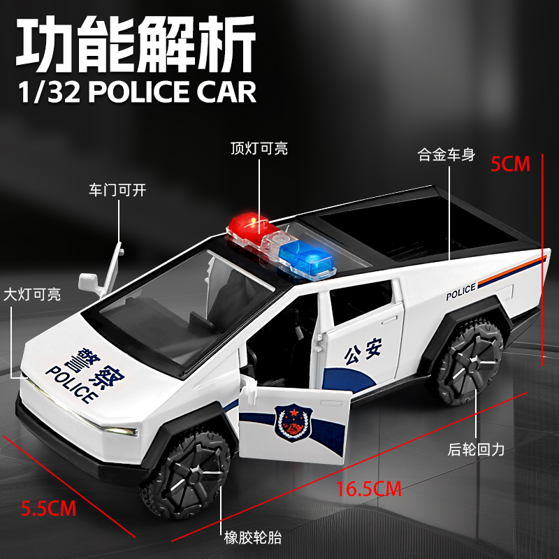 1:32特斯拉赛博皮卡警车模型仿真合金车儿童特警公安玩具小汽车