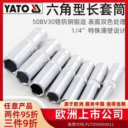 易尔拓(YATO)六角长套筒1/4英寸小飞铬钒钢长款6角套筒头套管