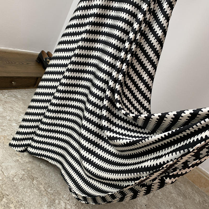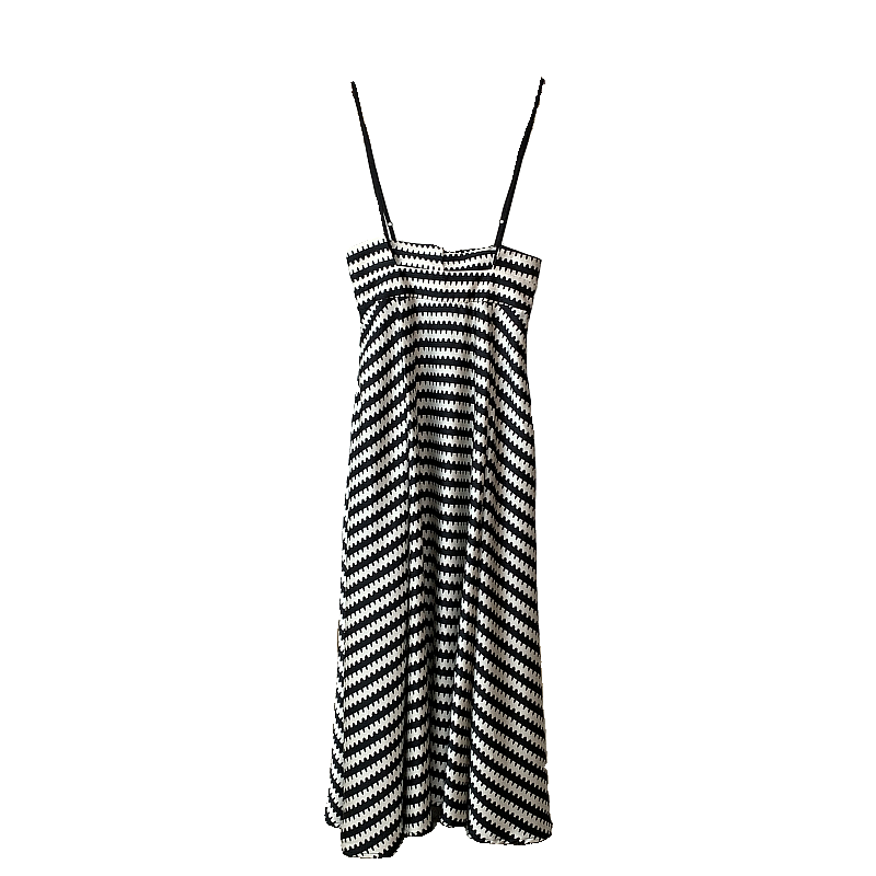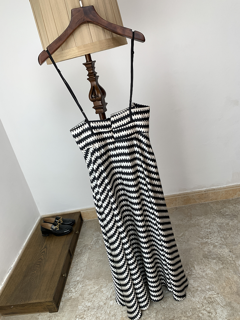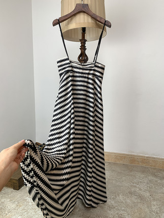轻松减龄时髦~条纹高腰背带裙 真丝大摆吊带连衣裙女2025夏季新款