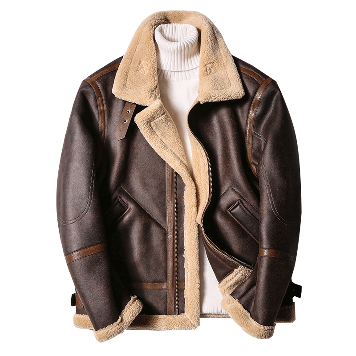 皮毛一体男士冬季大码加绒加厚皮衣飞行员夹克男机车服羊羔毛外套