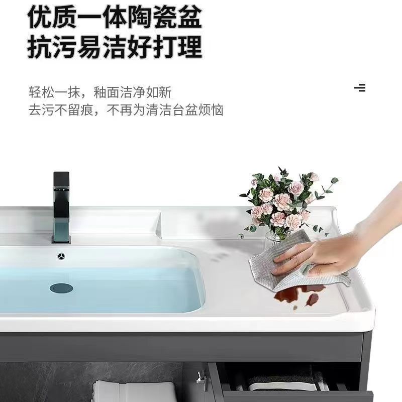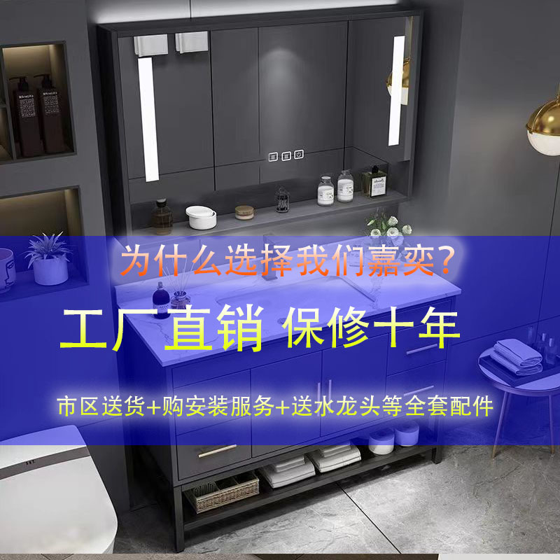 轻奢智能浴d室柜陶瓷一体盆洗手洗漱台盆浴柜组合化妆室镜柜实木