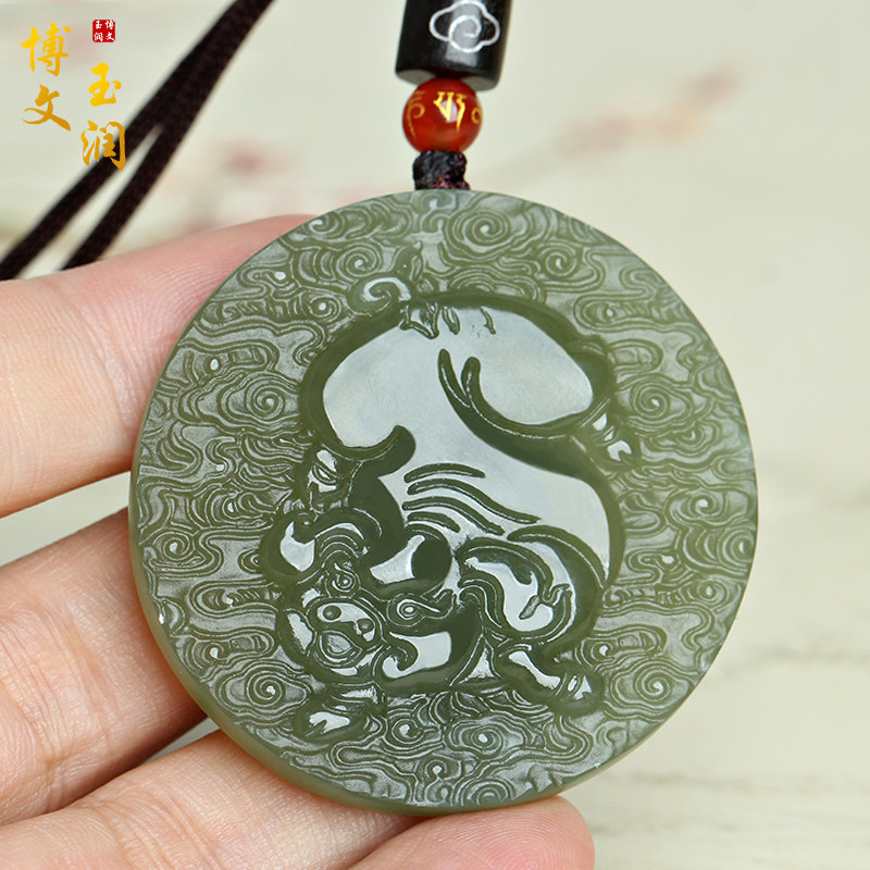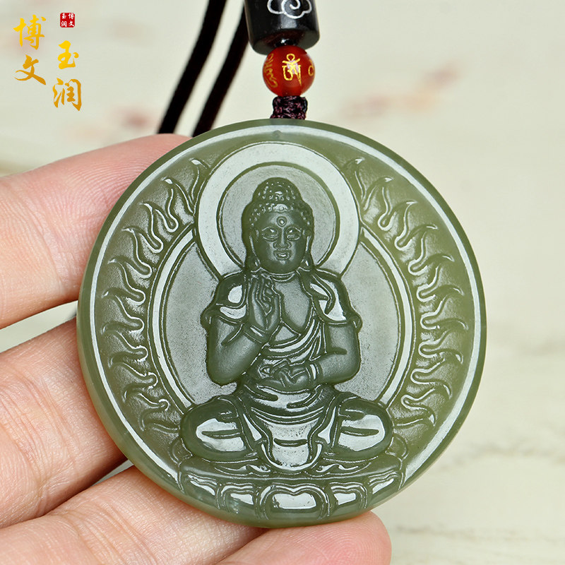 天然和田玉生肖猪阿弥陀佛本命佛守护神玉吊坠挂件男女款玉佩玉牌