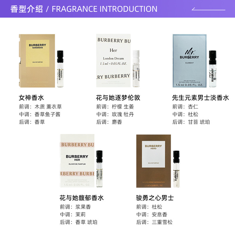 【自营】博柏利花与她馥郁香水1.5ml试用装花果香调淡香【临期】